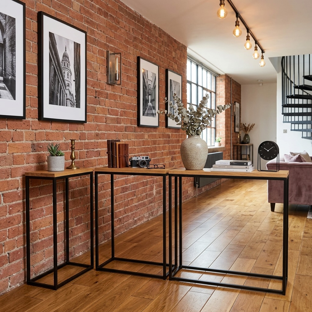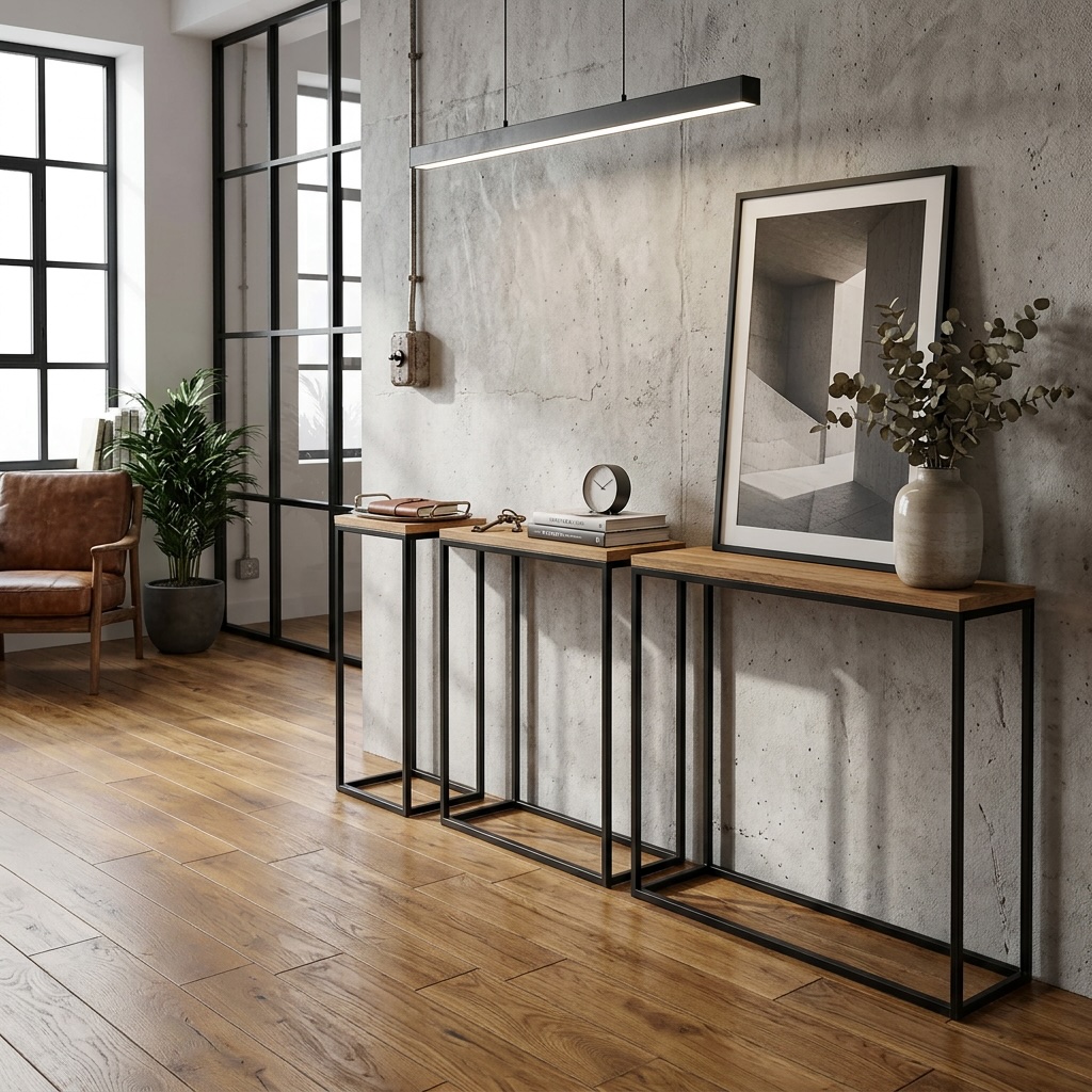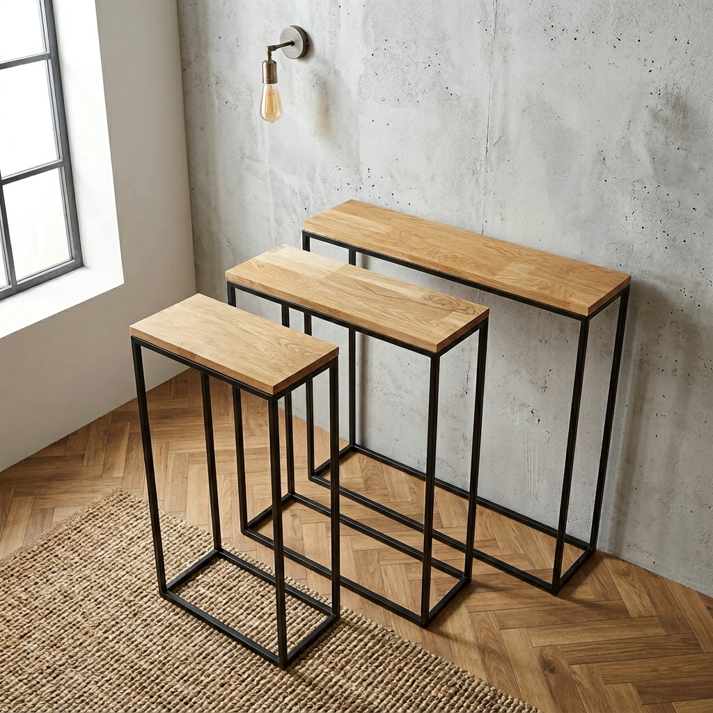 The special feature of our product is its high quality. The steel profile has been welded. This ensures durability, and the furniture does not require assembly. Covering with powder coating technology provides perfect anti-corrosion protection. The top of our loft console is made of plywood. Thanks to natural oak, the product looks more exclusive than consoles with laminated boards.