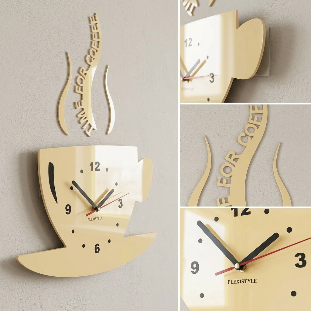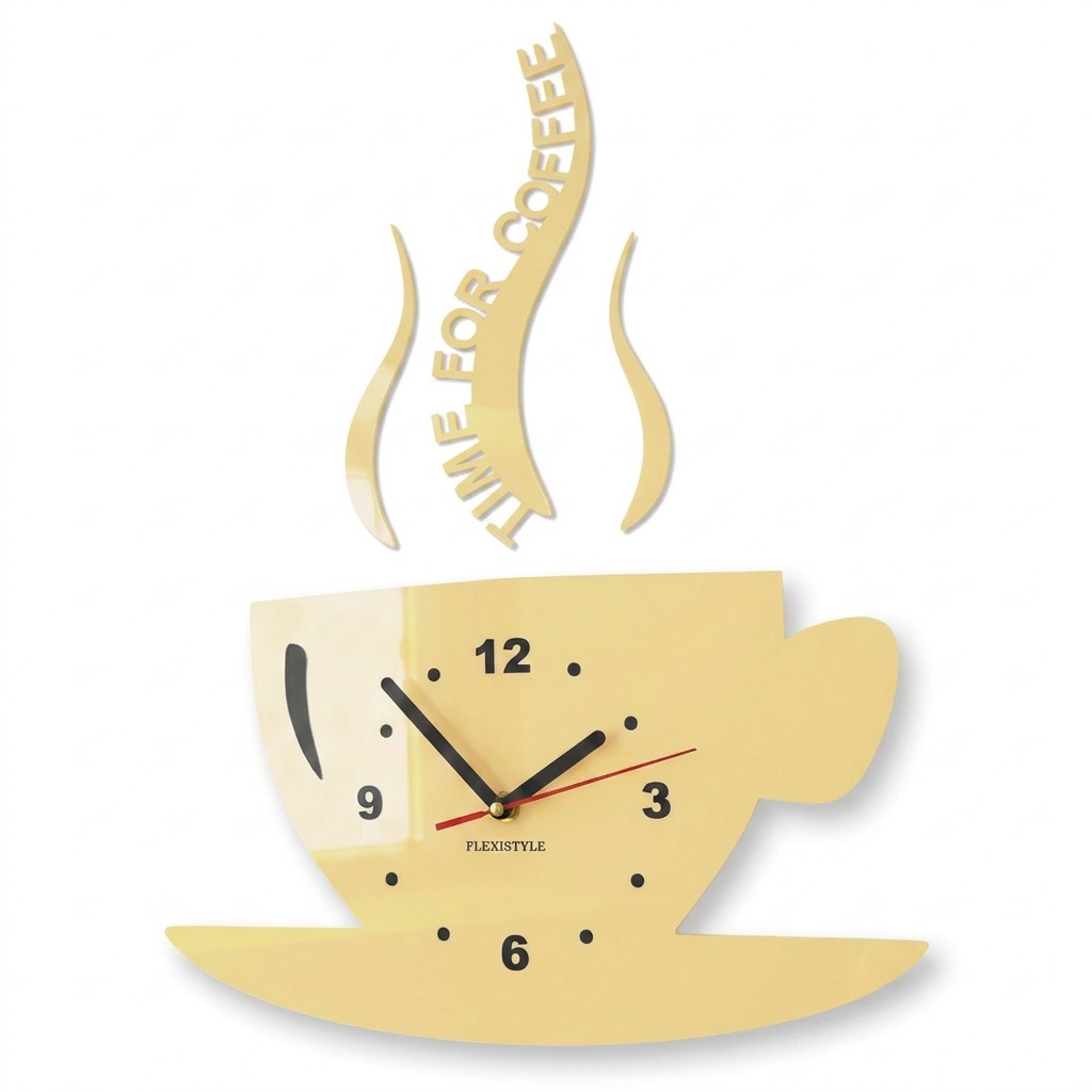 Add a unique touch to your kitchen with the modern wall clock in the shape of a coffee cup from FLEXISTYLE. This kitchen clock is not only a practical timekeeping solution but also a stylish wall decoration that instantly catches the eye.