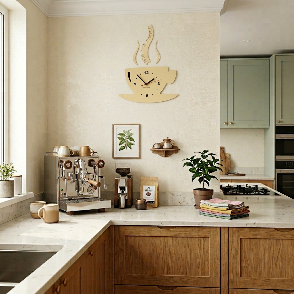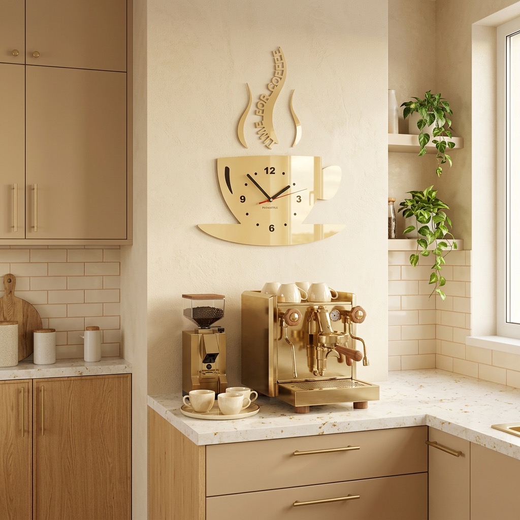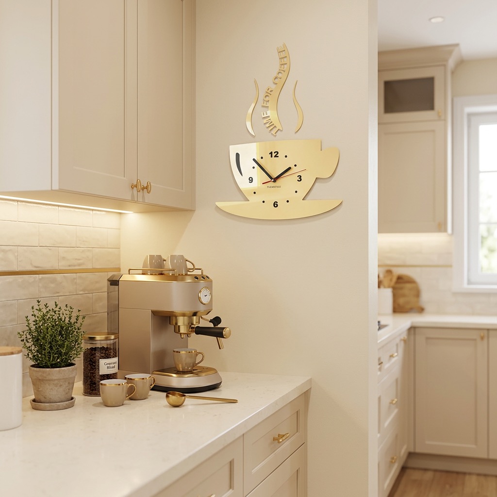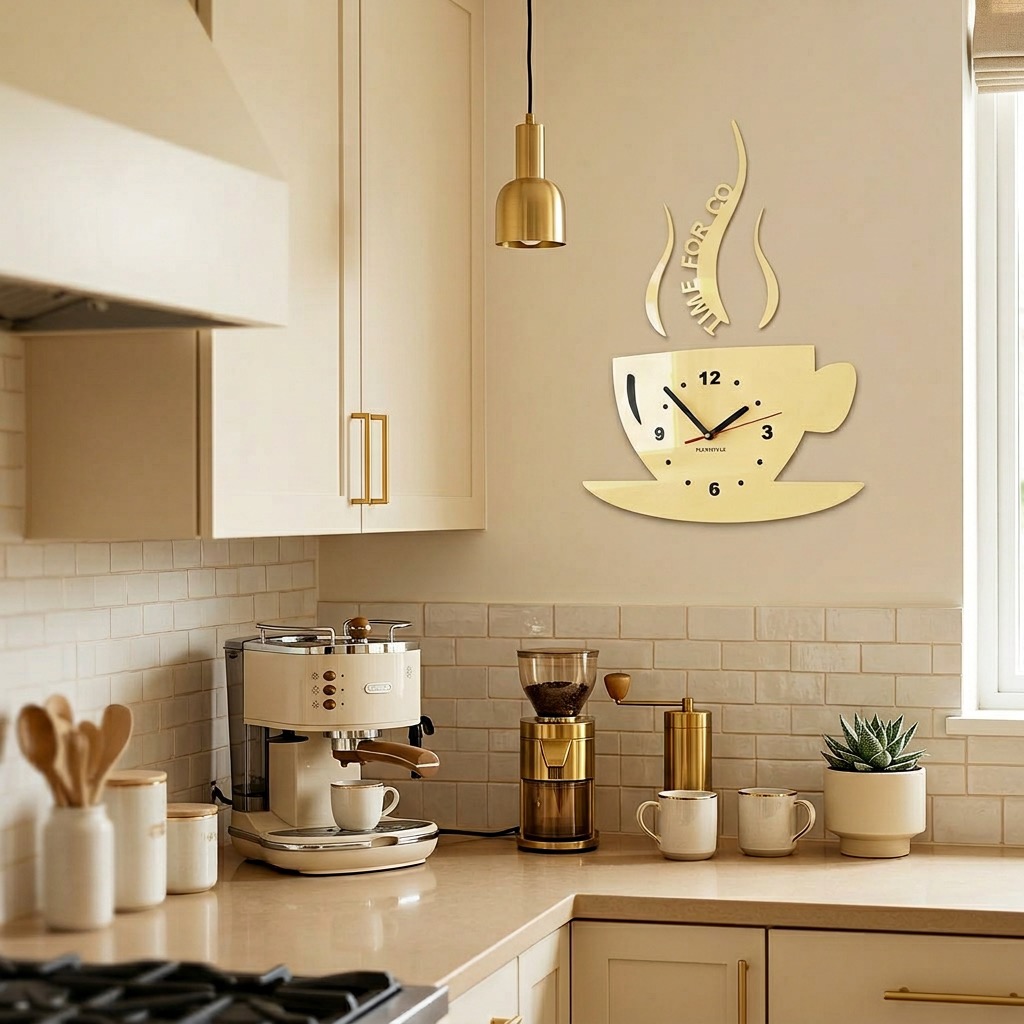 This modern kitchen wall clock in a coffee cup shape combines functionality with decorative style. Ideal for kitchens, dining areas, or cafés, adding a cozy and stylish touch to any space.