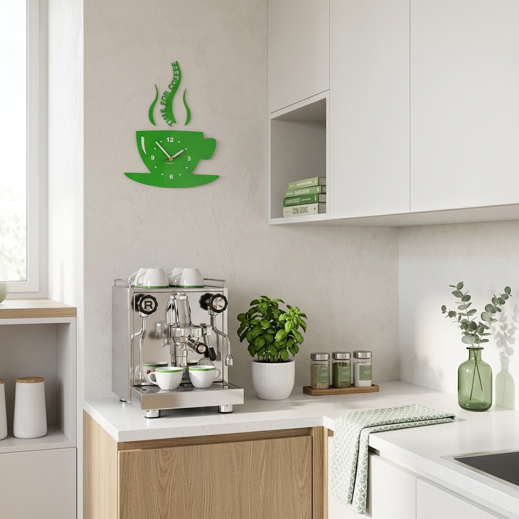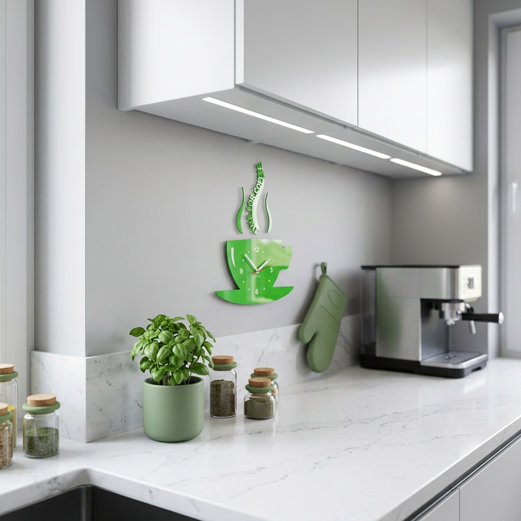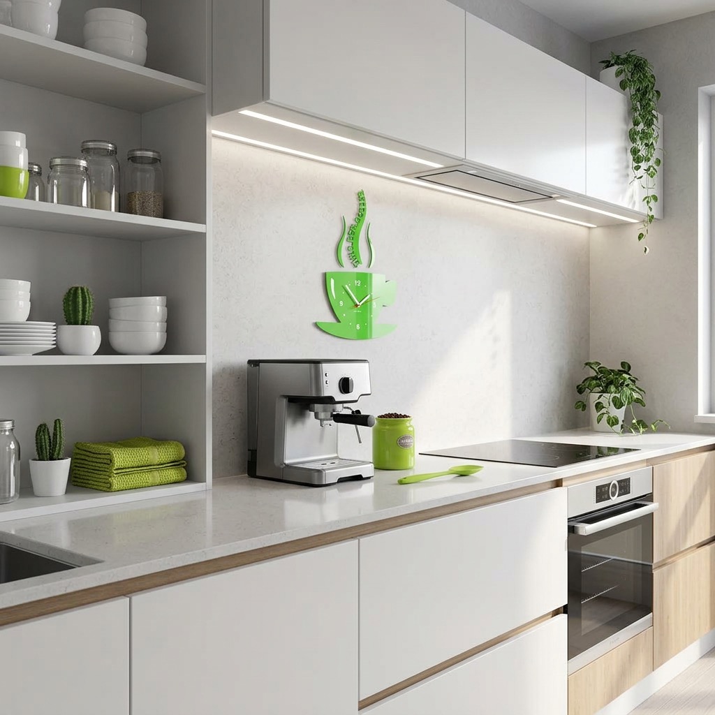 Add a unique touch to your kitchen with the modern wall clock in the shape of a coffee cup from FLEXISTYLE. This kitchen clock is not only a practical timekeeping solution but also a stylish wall decoration that instantly catches the eye.