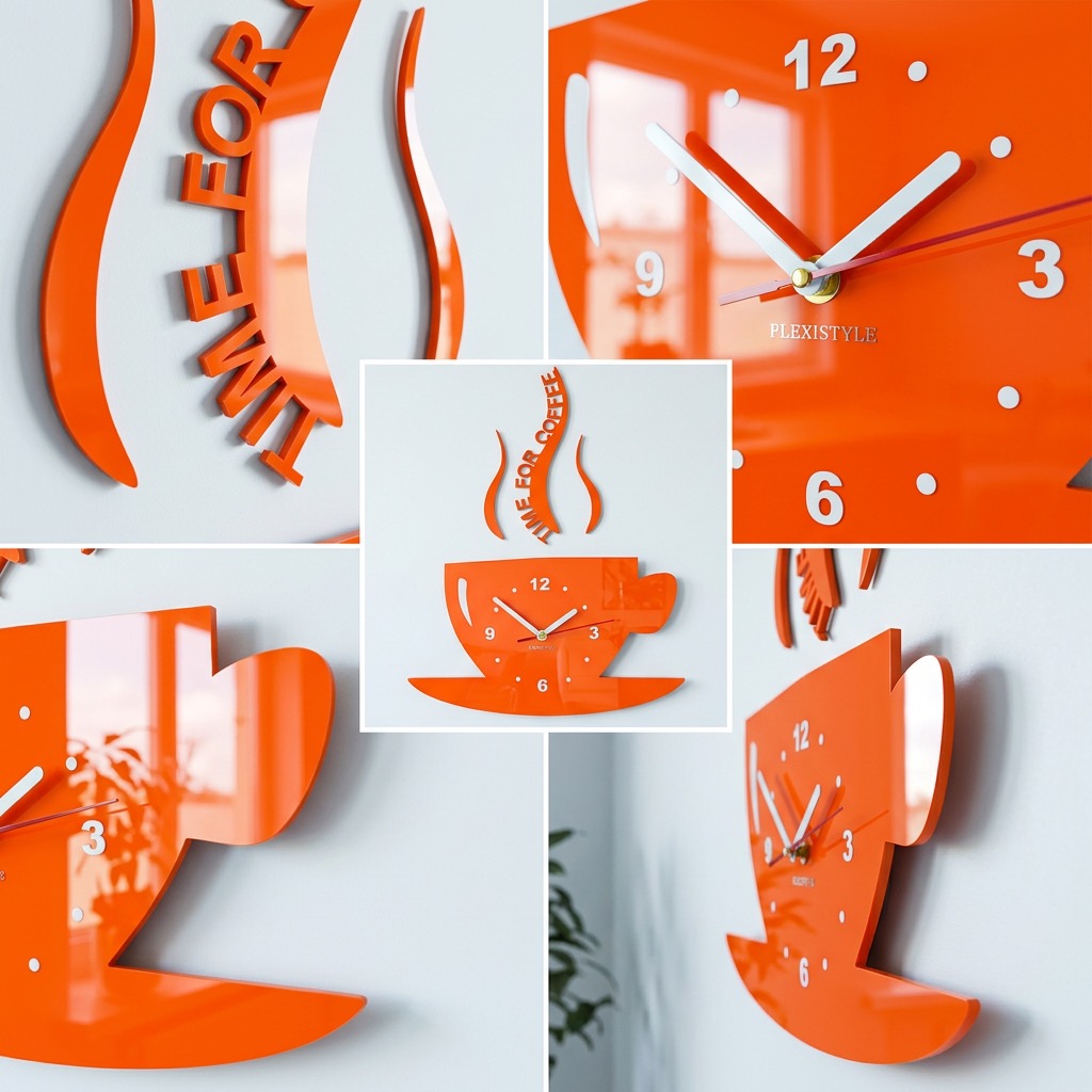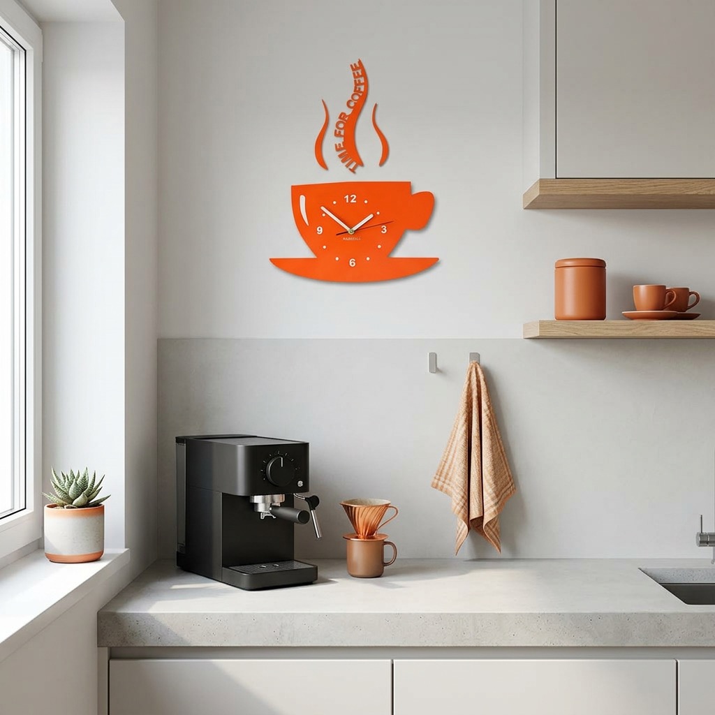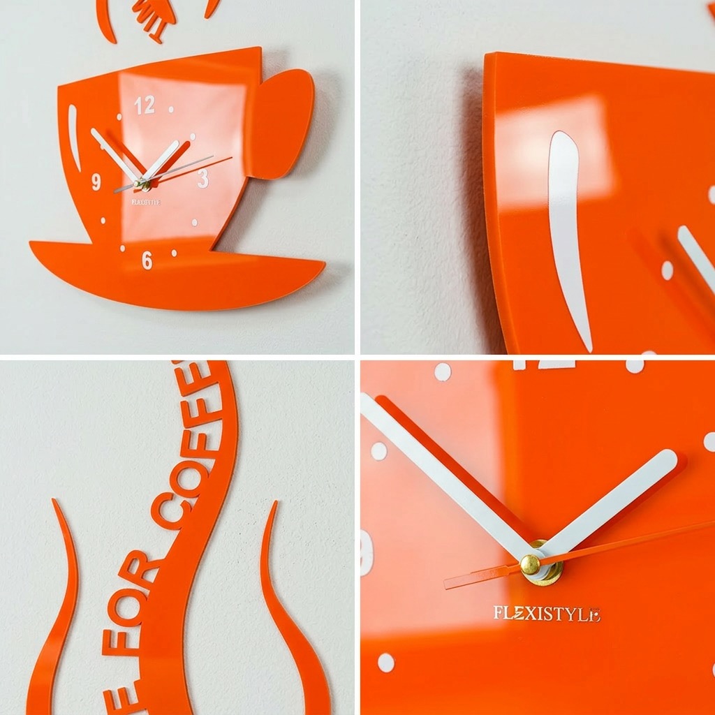 Add a unique touch to your kitchen with the modern wall clock in the shape of a coffee cup from FLEXISTYLE. This kitchen clock is not only a practical timekeeping solution but also a stylish wall decoration that instantly catches the eye.