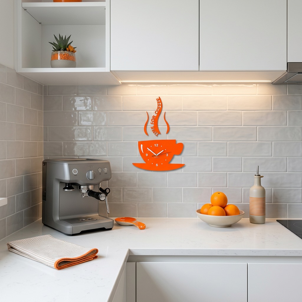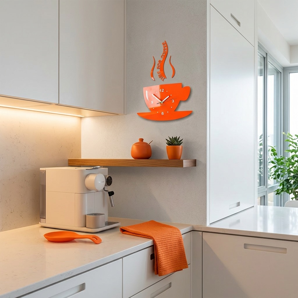 This modern kitchen wall clock in a coffee cup shape combines functionality with decorative style. Ideal for kitchens, dining areas, or cafés, adding a cozy and stylish touch to any space.