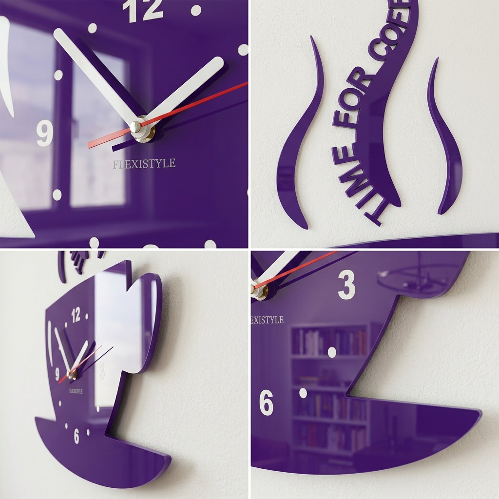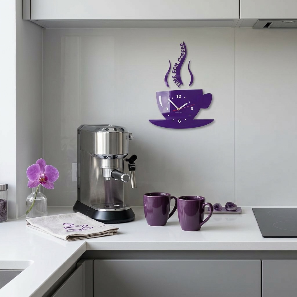 Add a unique touch to your kitchen with the modern wall clock in the shape of a coffee cup from FLEXISTYLE. This kitchen clock is not only a practical timekeeping solution but also a stylish wall decoration that instantly catches the eye.