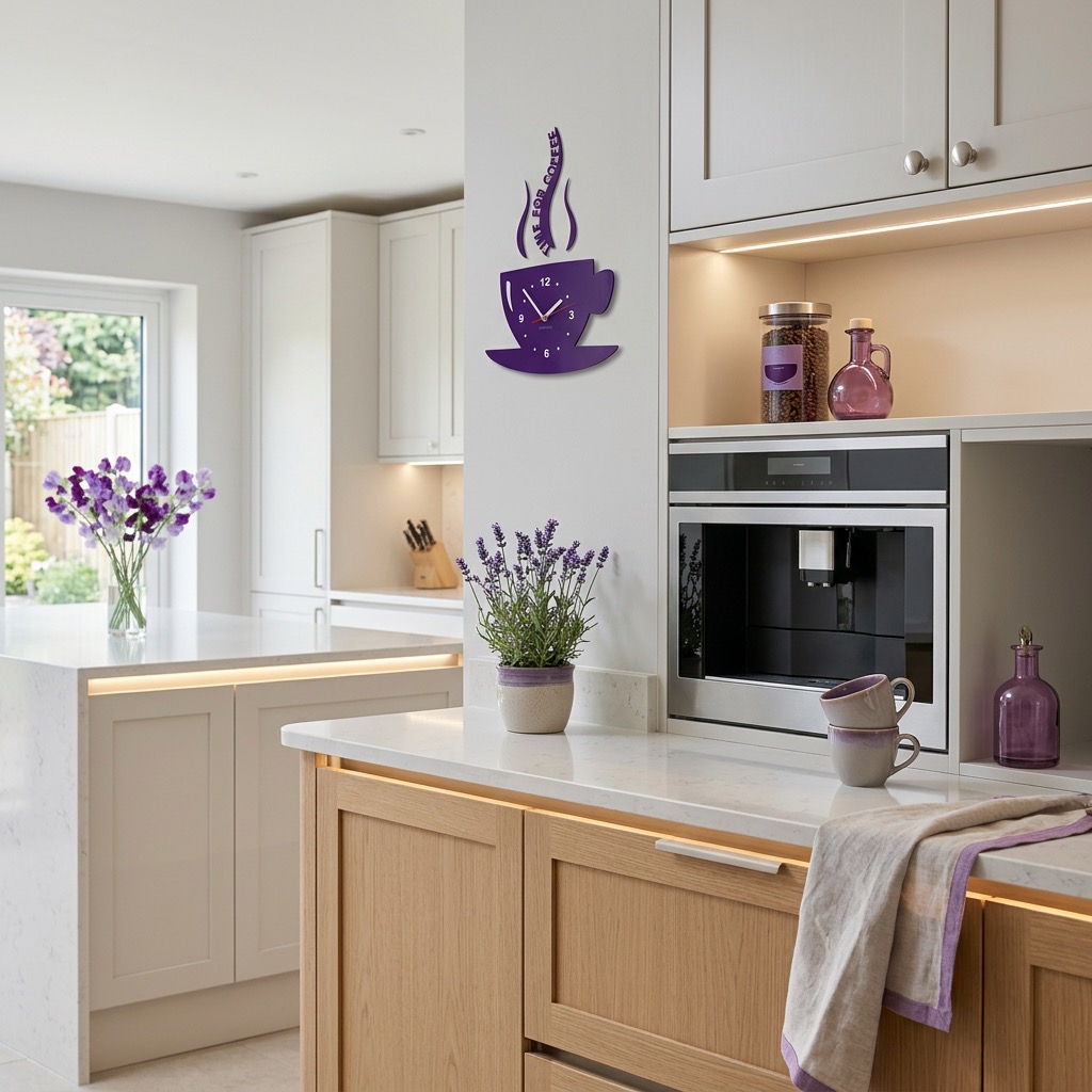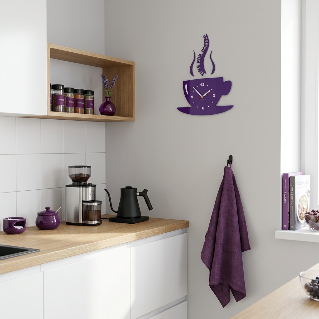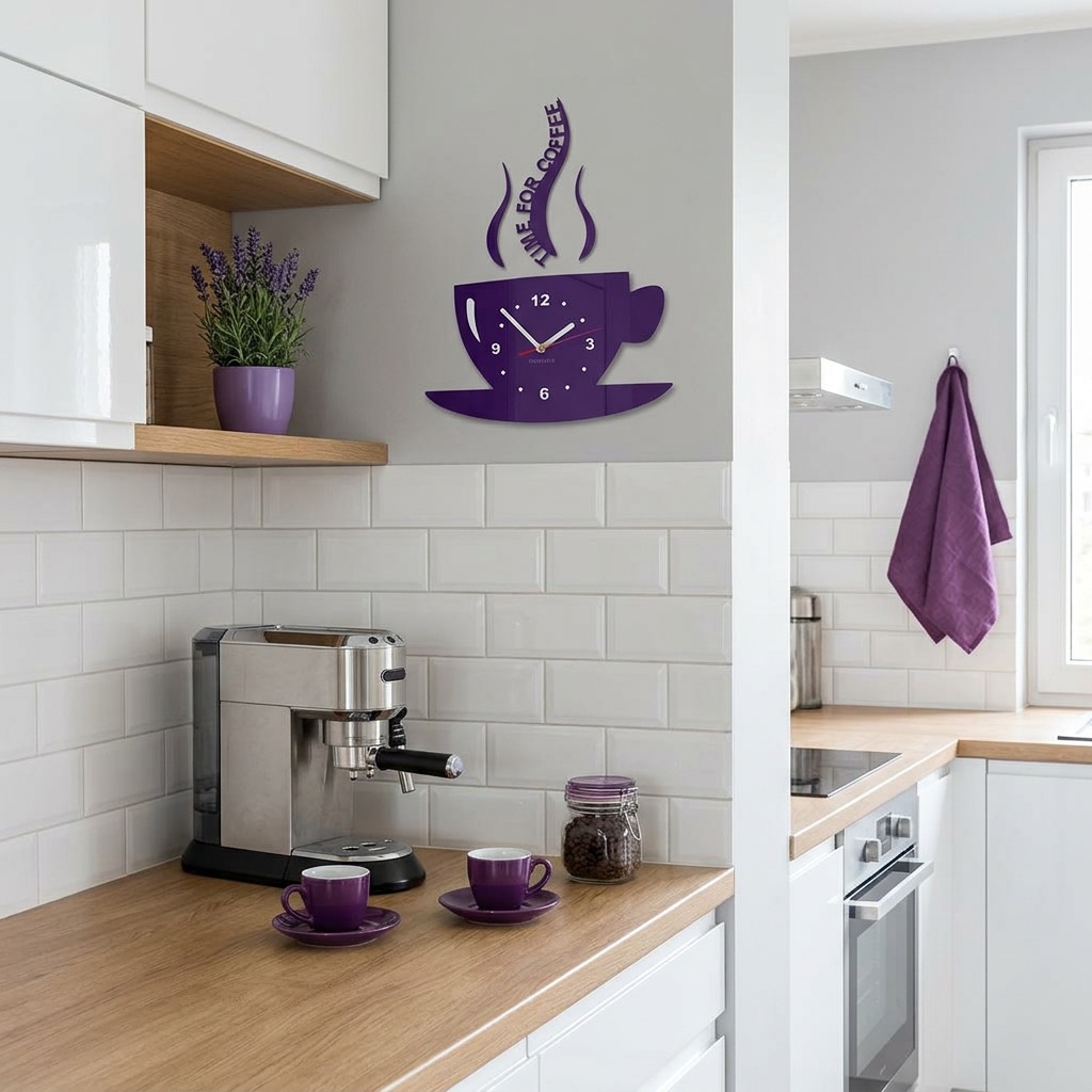 Kitchen wall clock CUP violet (1)