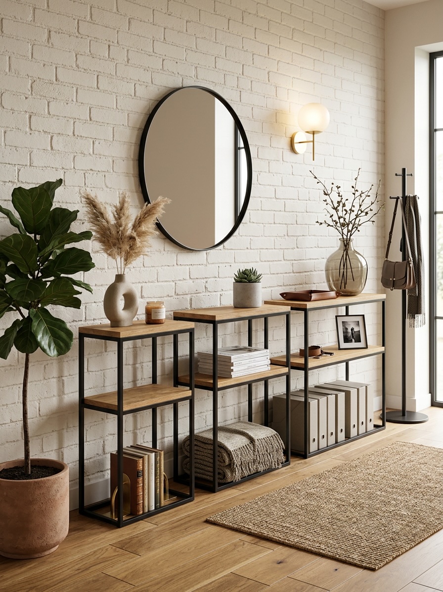 Loft wooden furniture console 40x80x20cm 2 shelves