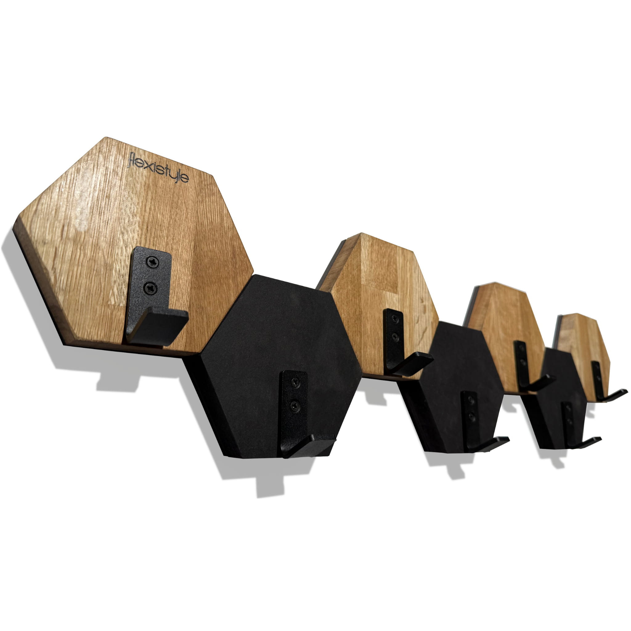 - Functionality: Each hexagon is equipped with a sturdy black metal hook.