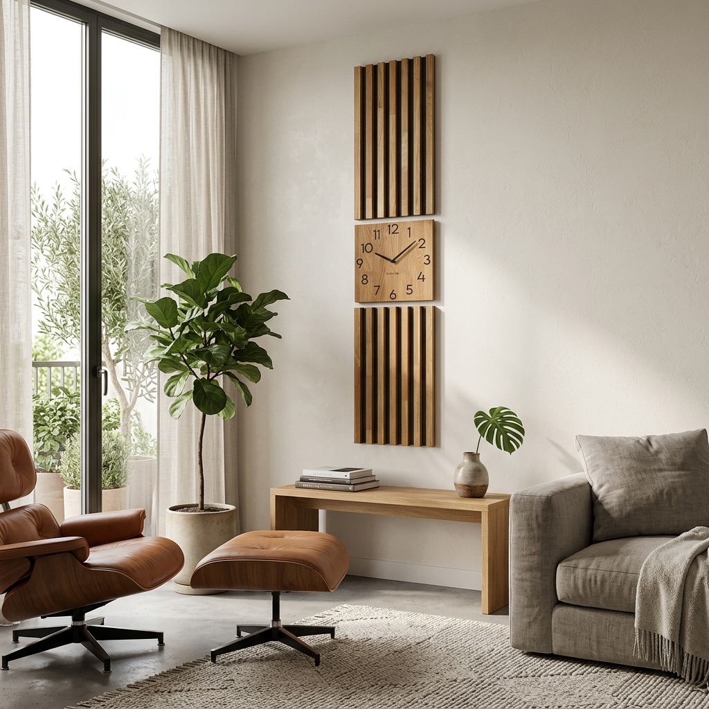 Montaż produktu jest sprawą banalną. Elementy dekoracji nie kleimy do ściany, a zawieszamy je na wkrętach. Daje to możliwość łatwej relokacji dekoracji. Ułatwia też remont pomieszczenia. Wystarczą 3 wkręty w ścianie i dekoracja może zacząć zdobić wnętrze. Obejrzyj krótki film, na którym pokazujemy jak zawiesić kompozycję lamel i zegara.