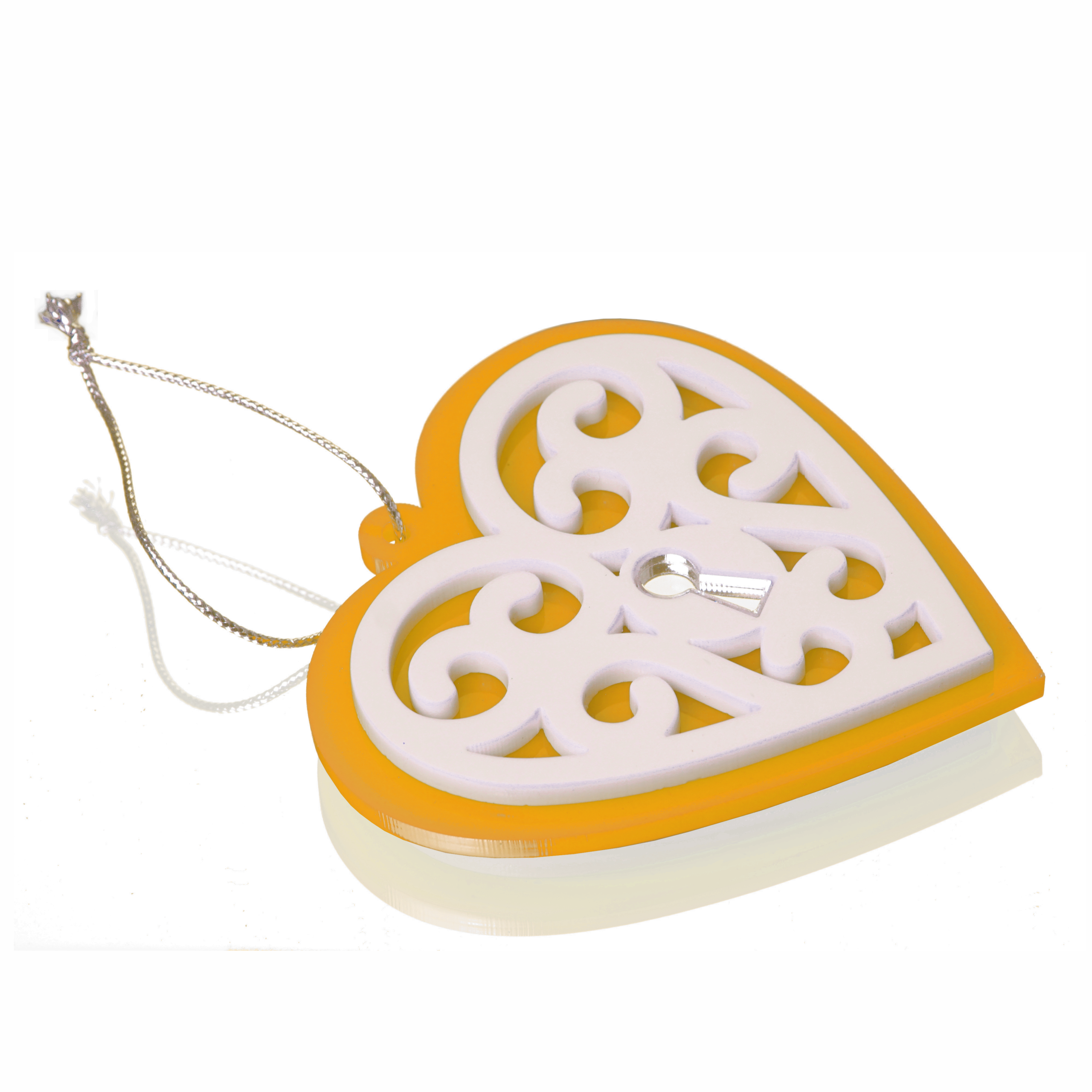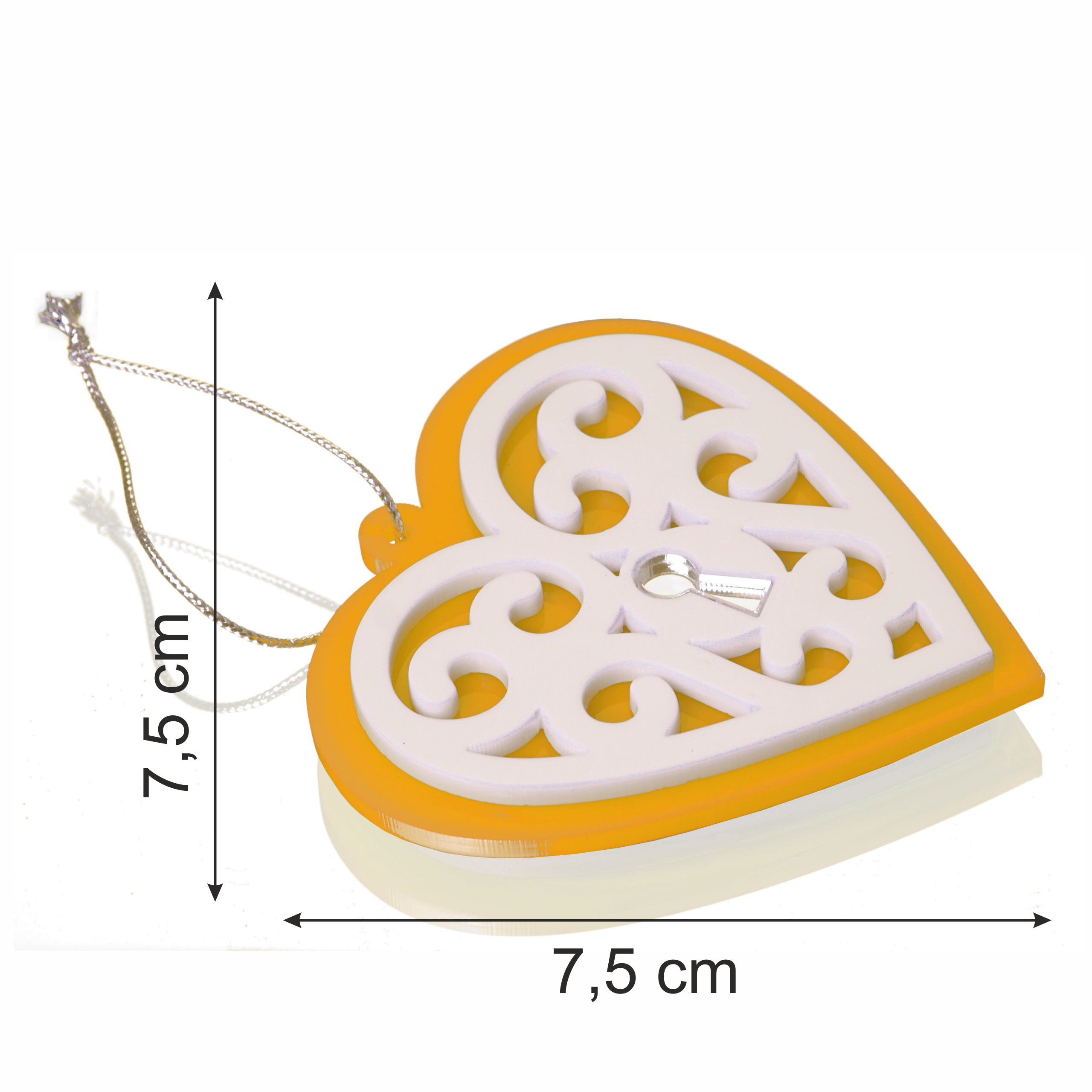 - Ażurowy wzór: Na każdym sercu umieściliśmy precyzyjnie wykonany ażurowy wzór z białej plexi, nadając ozdobie wyjątkowy charakter.