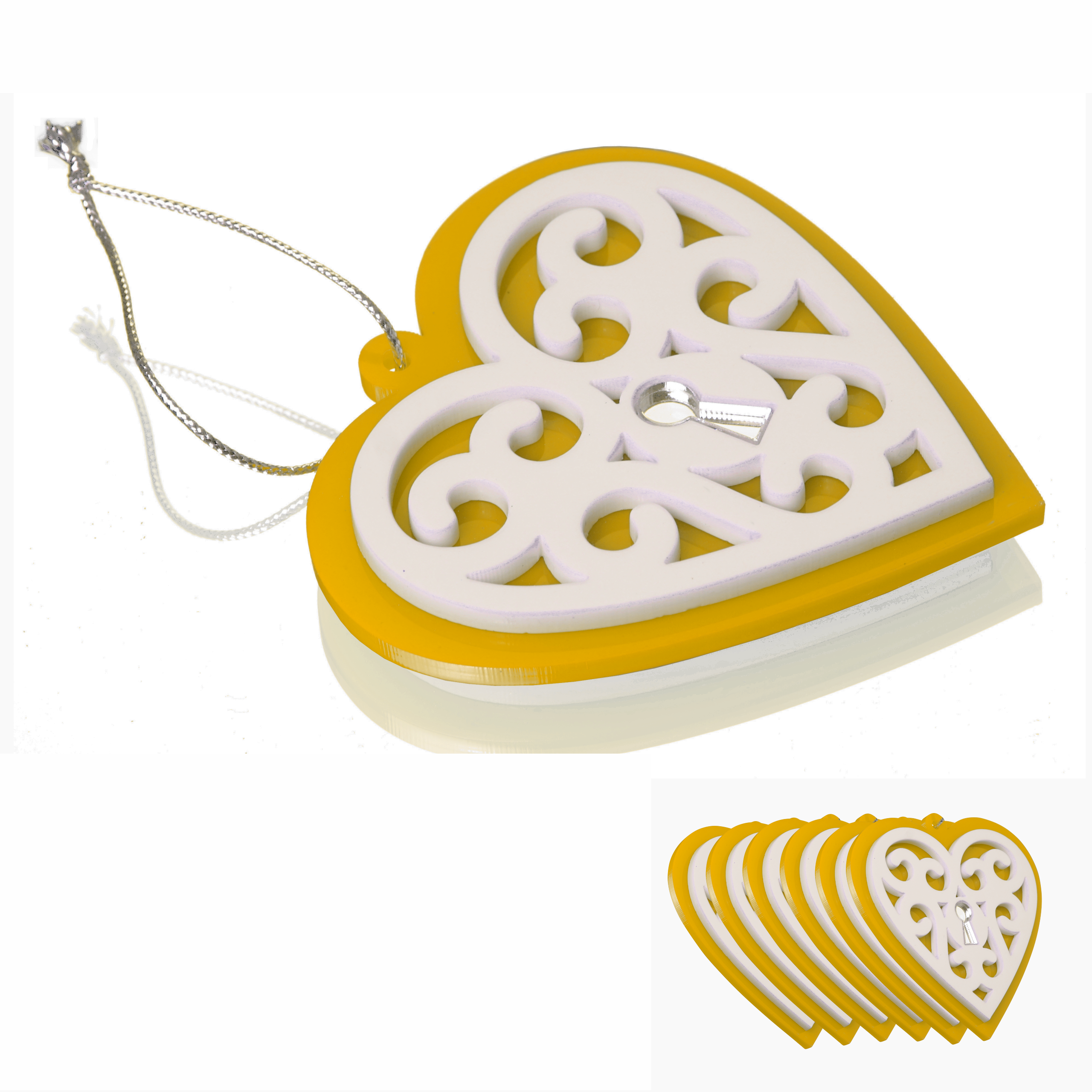 Dekoracja bożonarodzeniowa Serce Żółte Ażur 6szt.