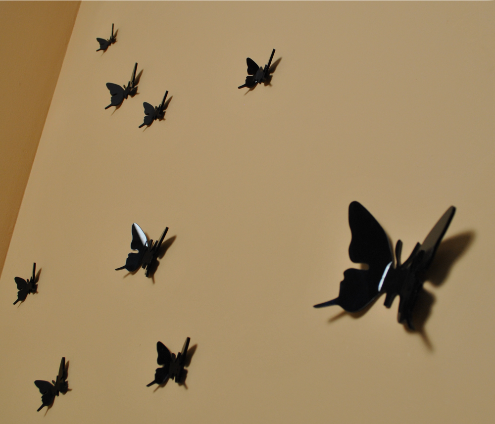 - Precyzyjne cięcia w materiale doskonale oddają kształt motyli, co sprawia, że dekoracja prezentuje się nowocześnie i estetycznie.