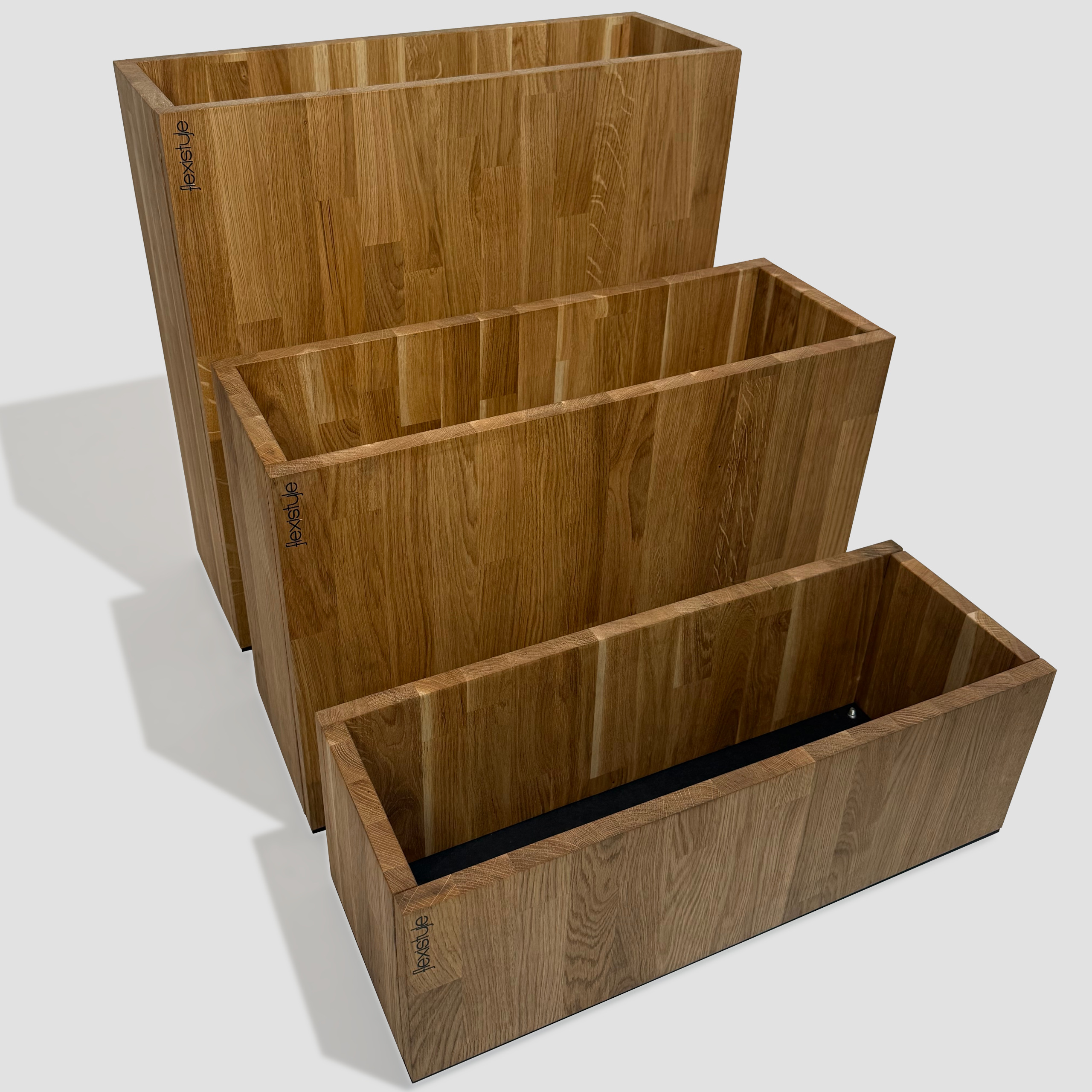 Wykonane w całości z litej klejonki dębowej – jednego z najszlachetniejszych gatunków drewna – donice zachwycają naturalnym wyglądem i trwałością. Ich powierzchnia została pokryta ekologicznym olejem, który nie tylko chroni drewno przed wilgocią, ale też wydobywa głębię jego koloru i rysunku słojów.