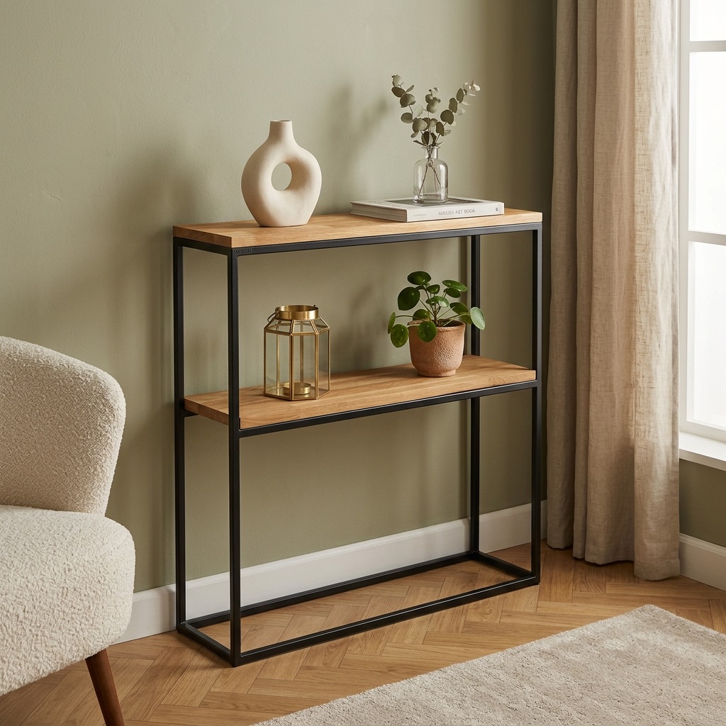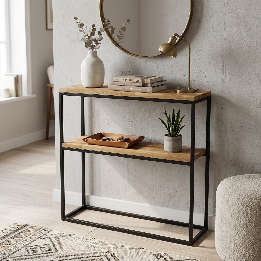 Drewniana Konsola Loftowa 80x80x20cm - Styl i Funkcjonalność W Jednym
