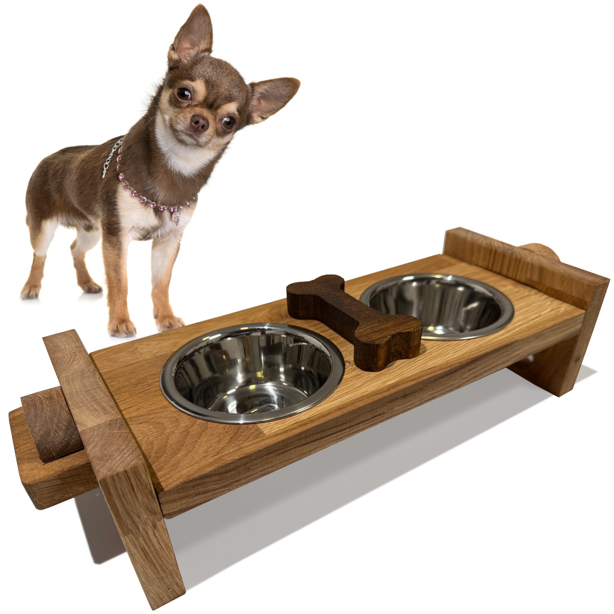 Szukasz stylowego i funkcjonalnego rozwiązania dla swojego pupila? Nasze miski ze stojakiem dębowym w rozmiarze M to doskonały wybór dla najmniejszych ras psów, takich jak Chihuahua, Yorkshire Terrier, Pomeranian, Maltańczyk czy Shih Tzu.