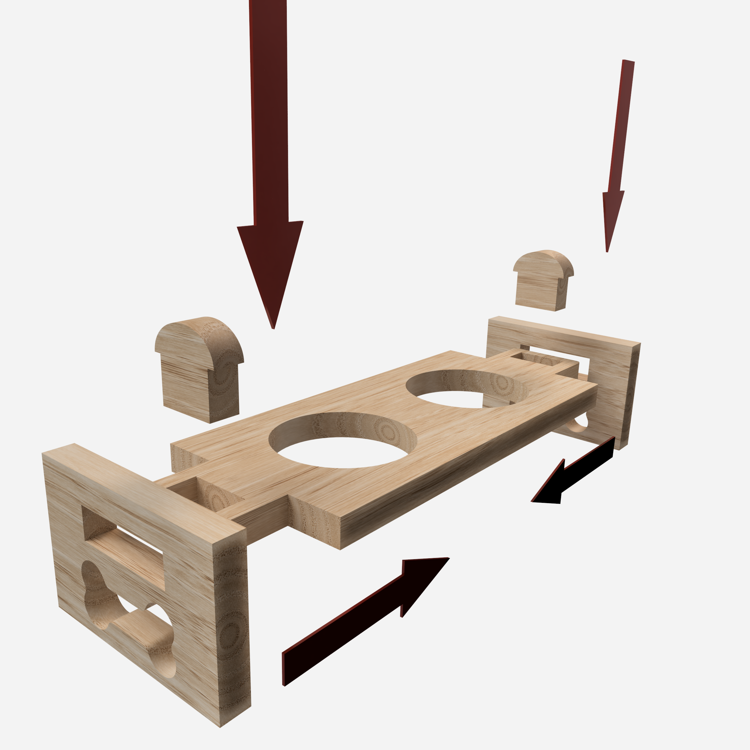 W zestawie: 2 miski ze stali nierdzewnej, dębowy stojak
