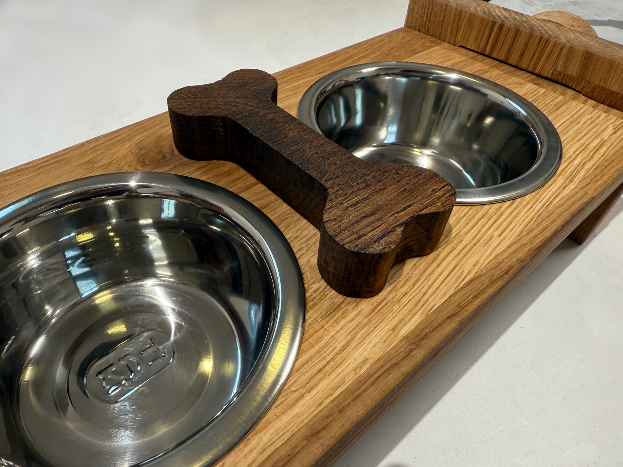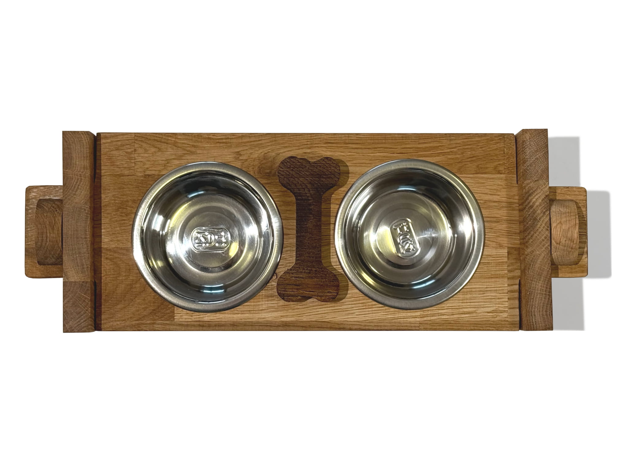 Miski dla psa ze stojakiem dębowym (rozmiar M) – idealne dla najmniejszych ras