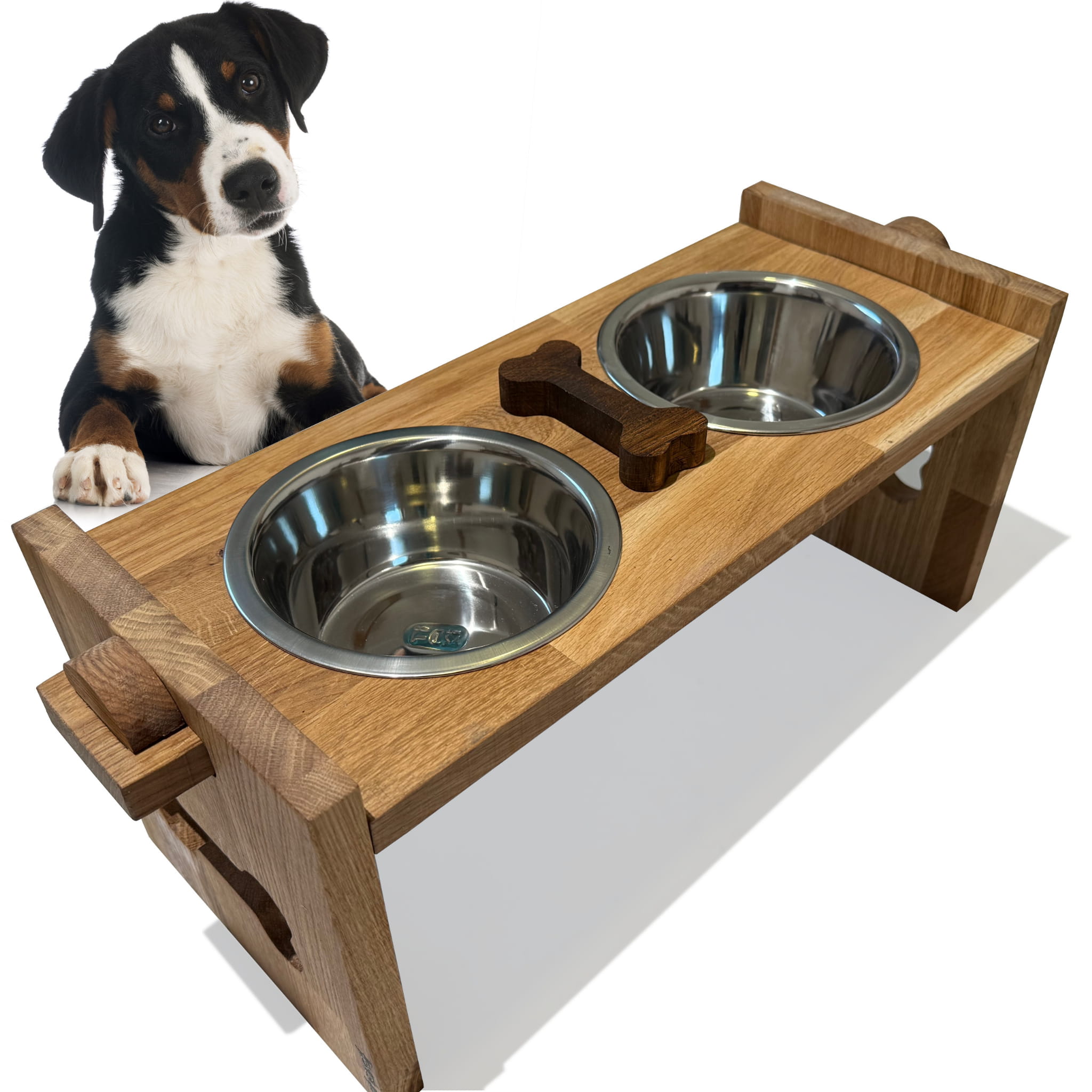 Miski dla psa ze stojakiem dębowym (rozmiar XL) – dla dużych ras