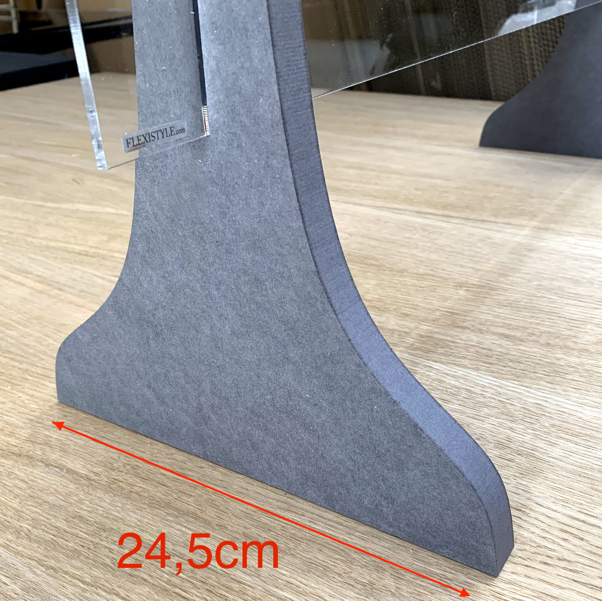 - Stabilna podstawa wykonana z barwionego MDFu w kolorze ciemno szarym o szerokości 24,5cm i wysokości 36cm.