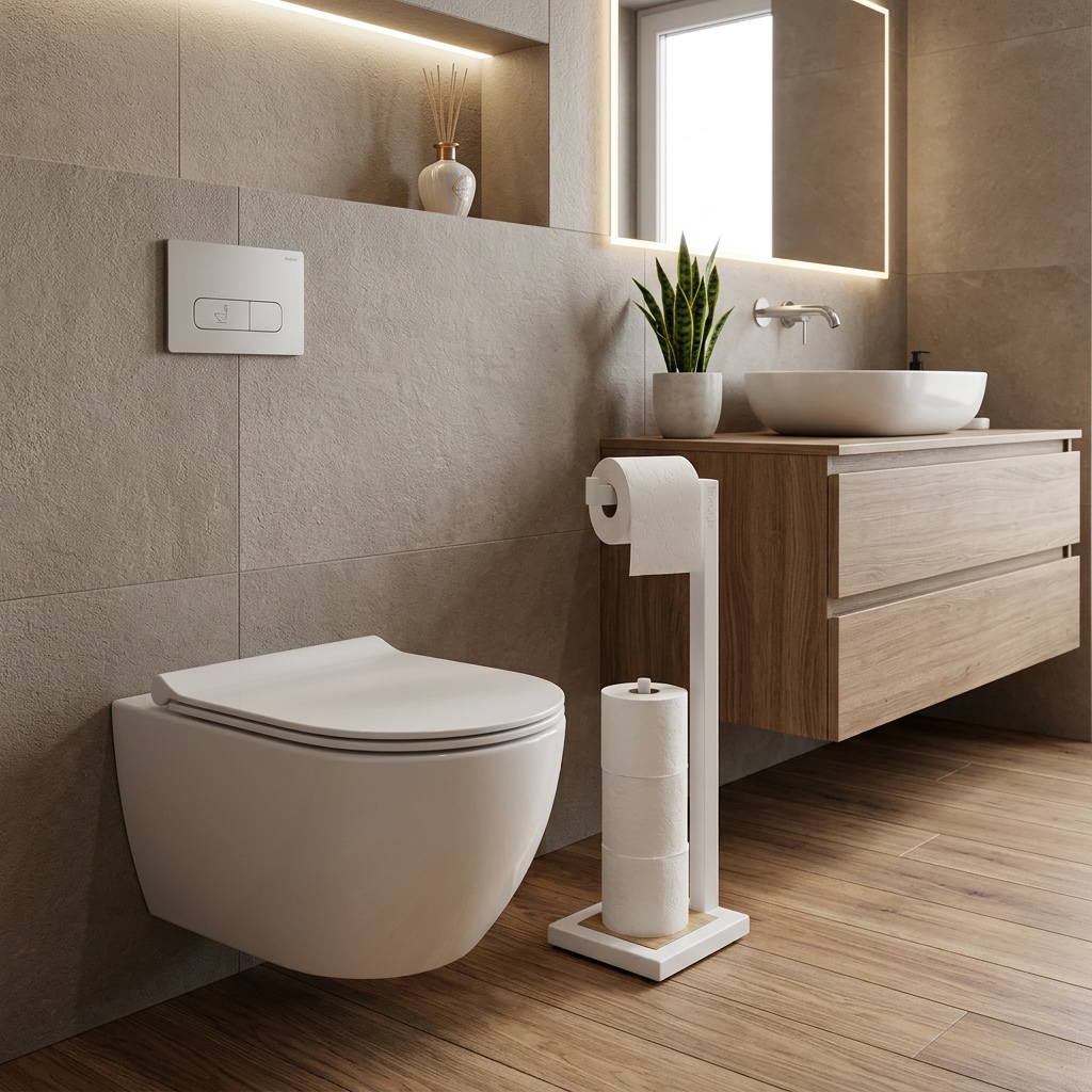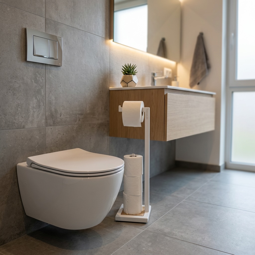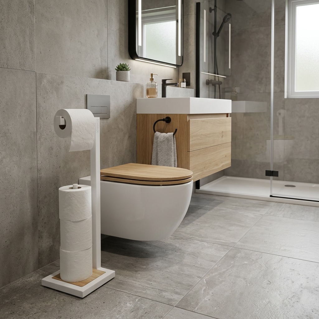 Stojak na papier toaletowy LOFT czarny to designerski element, który nada nowoczesny charakter Twojej łazience. Oto kluczowe cechy tego produktu: