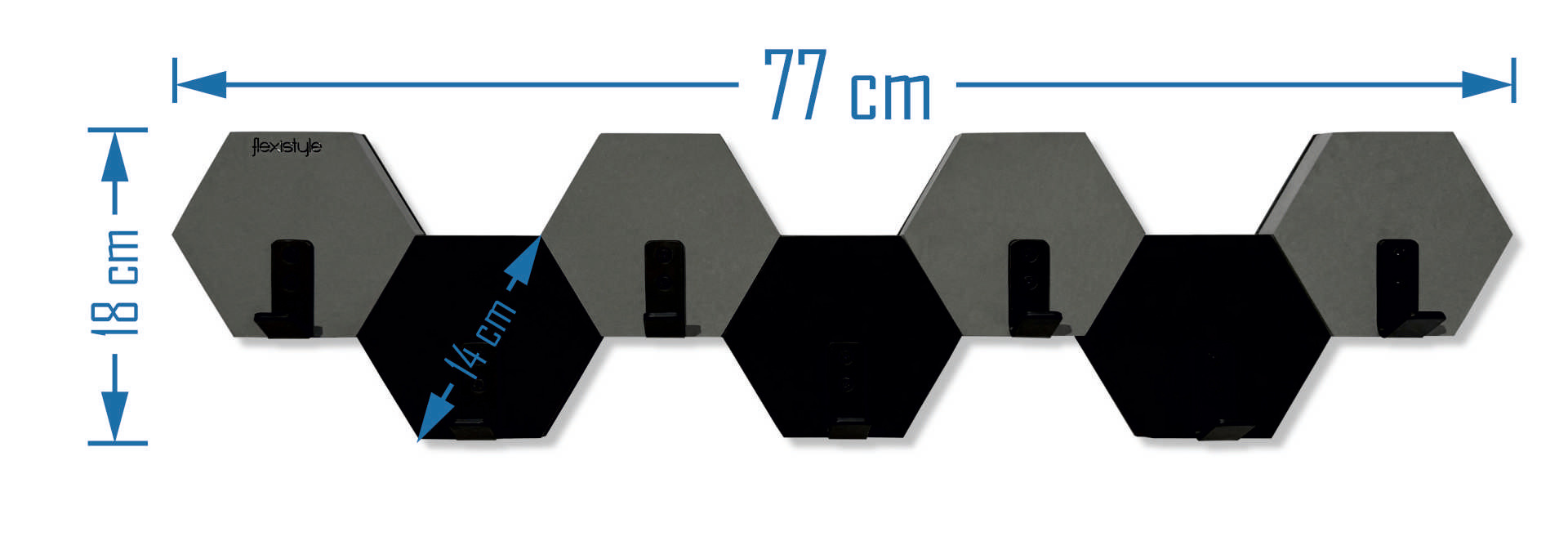 Wieszak ścienny HEXAGON 77 cm – czarno-szary MDF