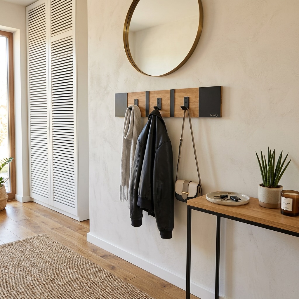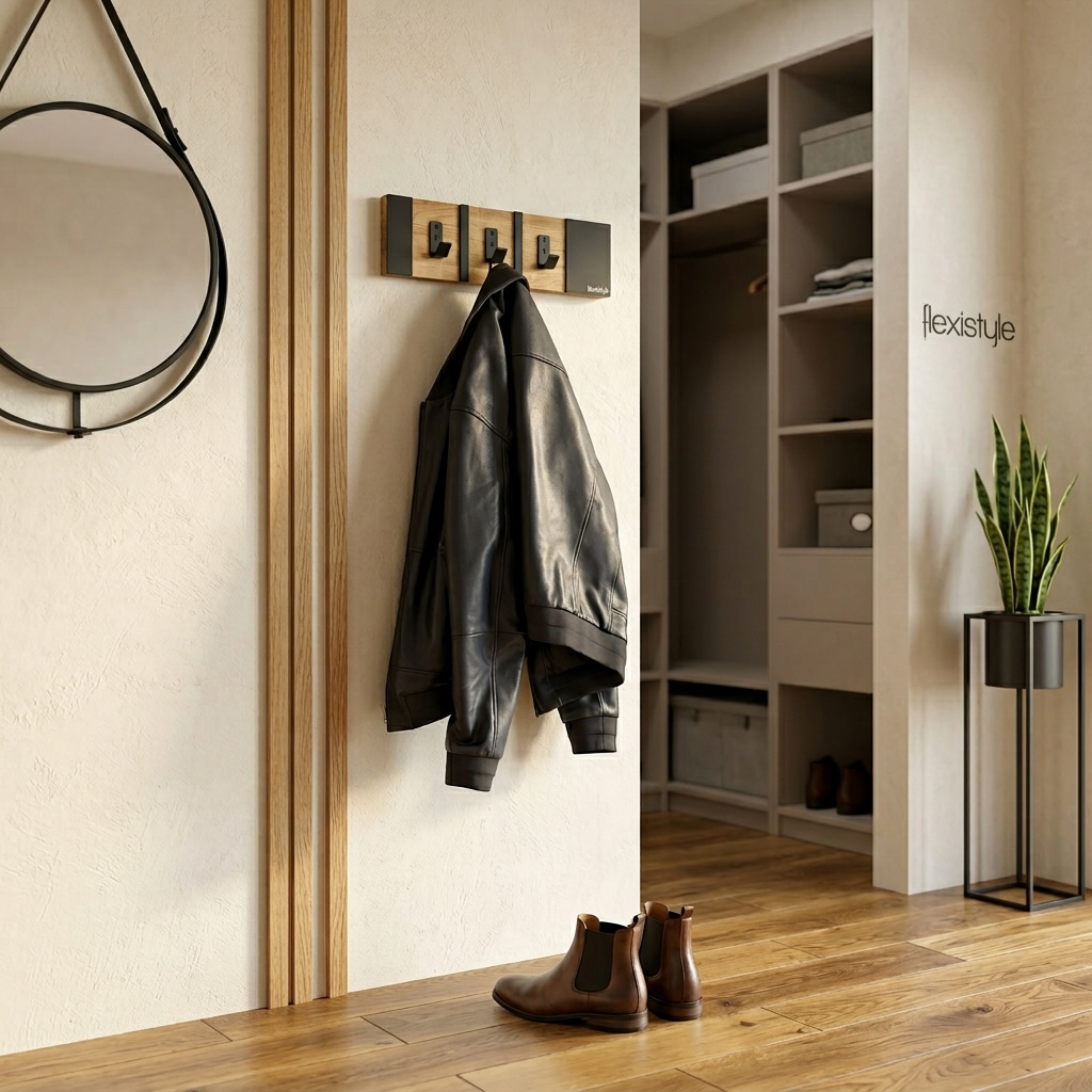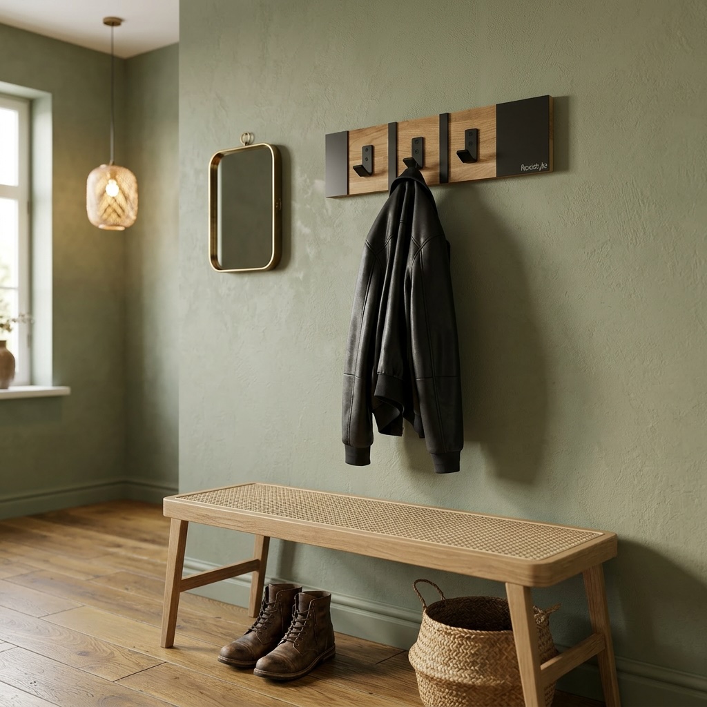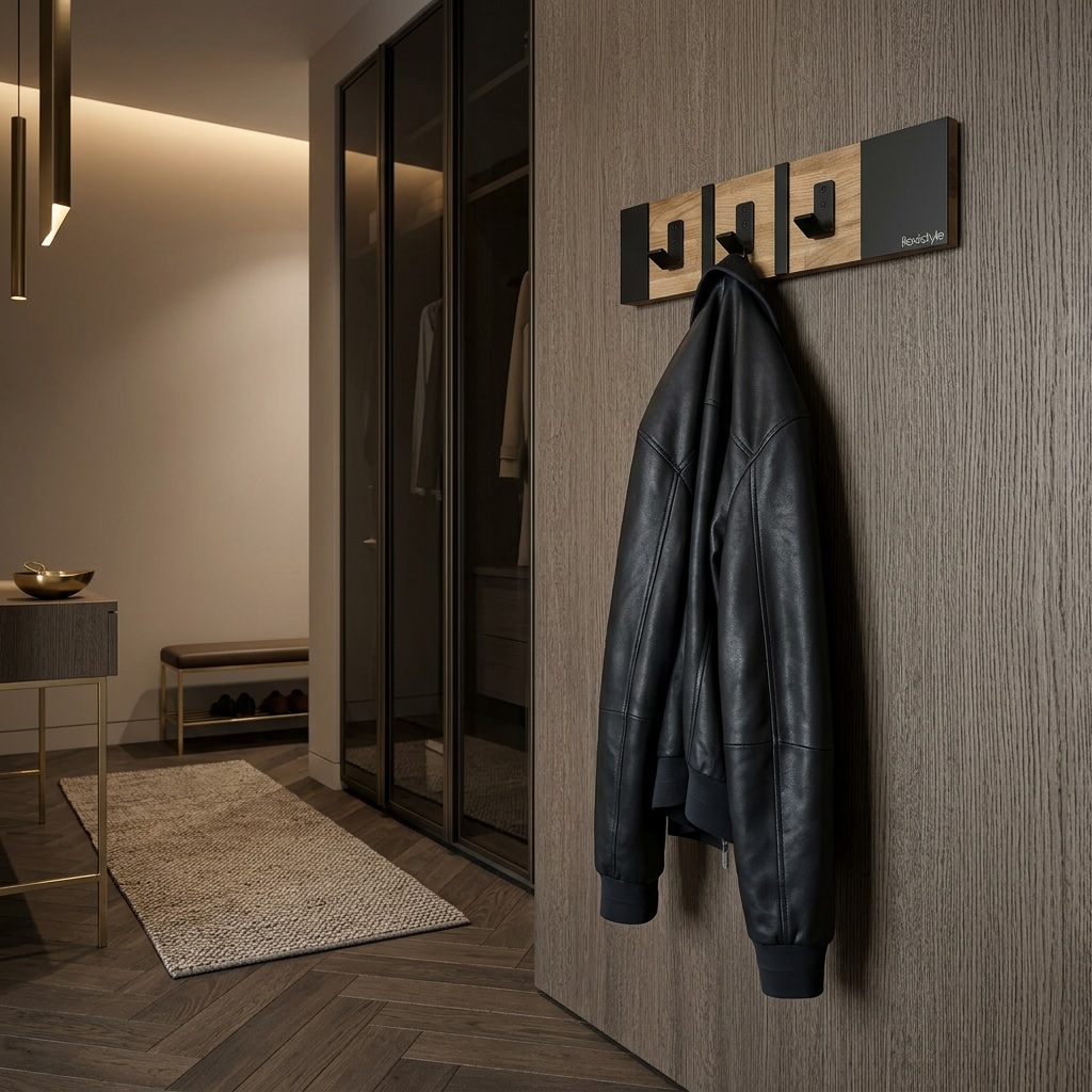 Połączenie ciepłego drewna dębowego z czarnymi metalowymi elementami tworzy spójną i elegancką całość. Wieszak doskonale wpisuje się w aranżacje loftowe industrialne oraz nowoczesne.