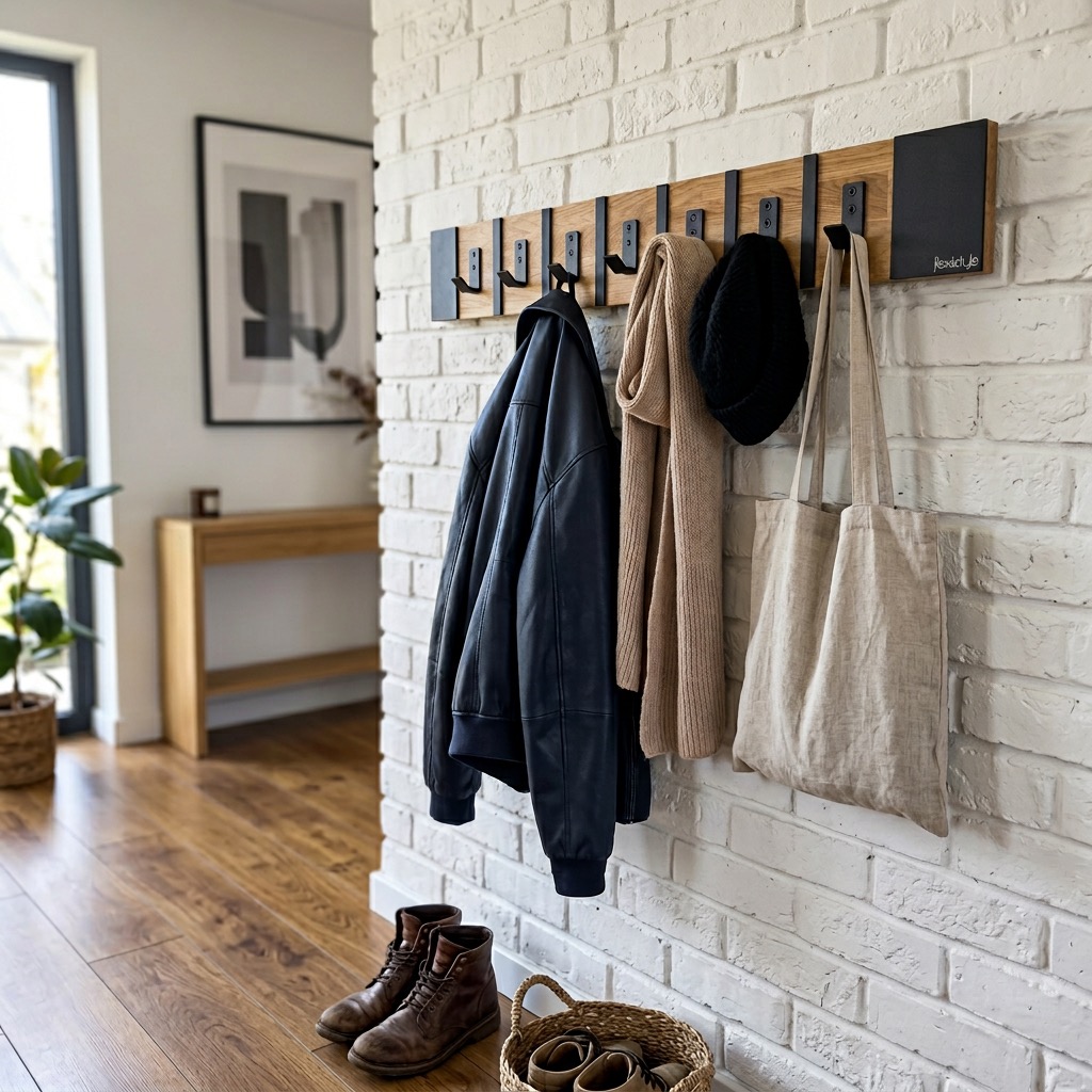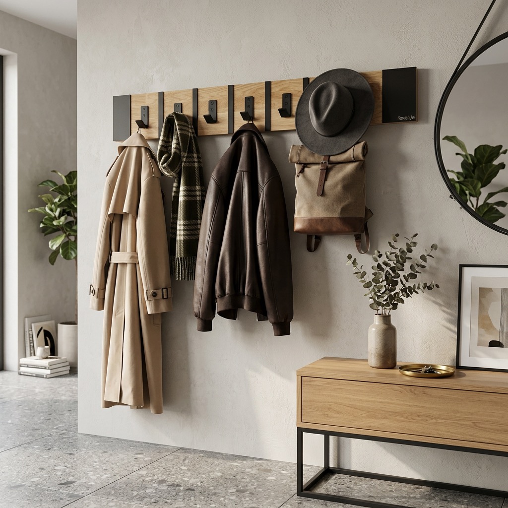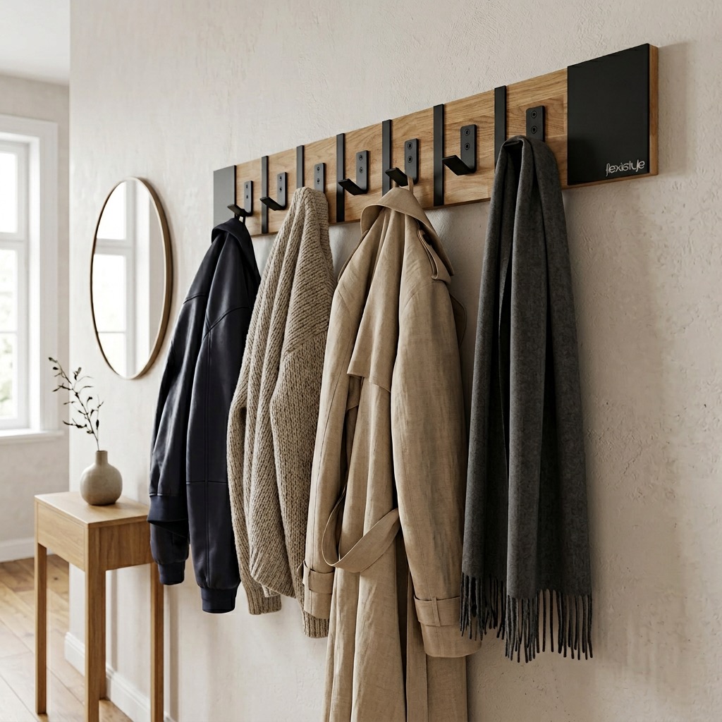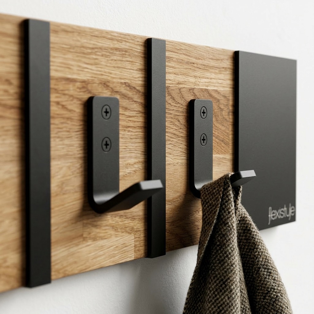 Połączenie ciepłego drewna dębowego z czarnymi metalowymi elementami tworzy spójną i elegancką całość. Wieszak doskonale wpisuje się w aranżacje loftowe industrialne oraz nowoczesne.
