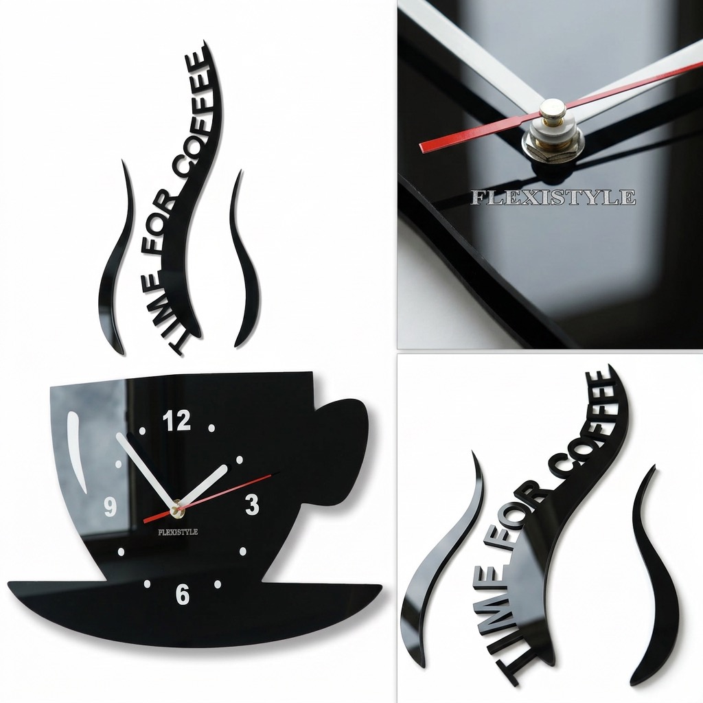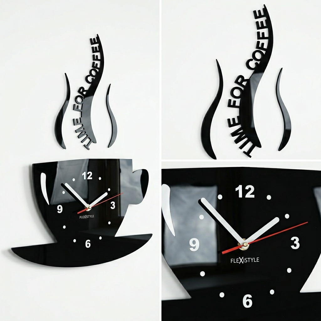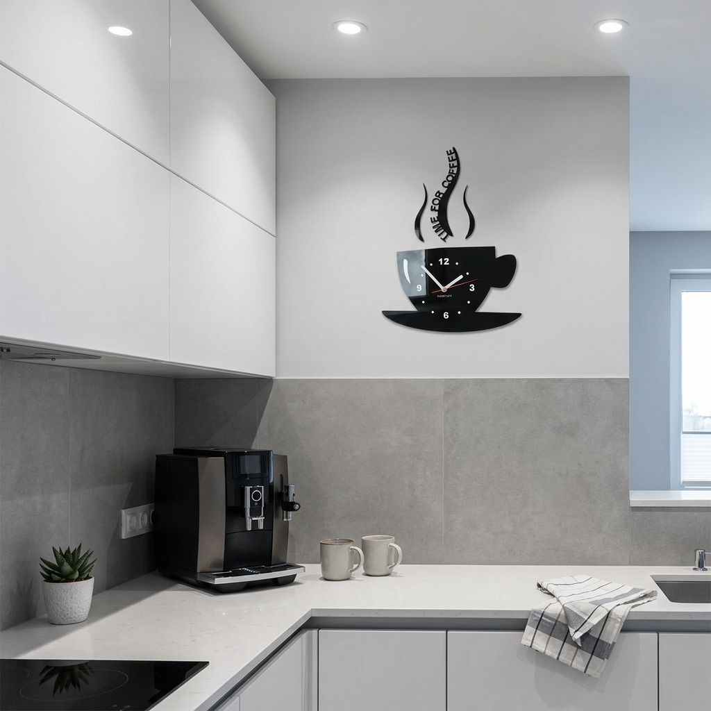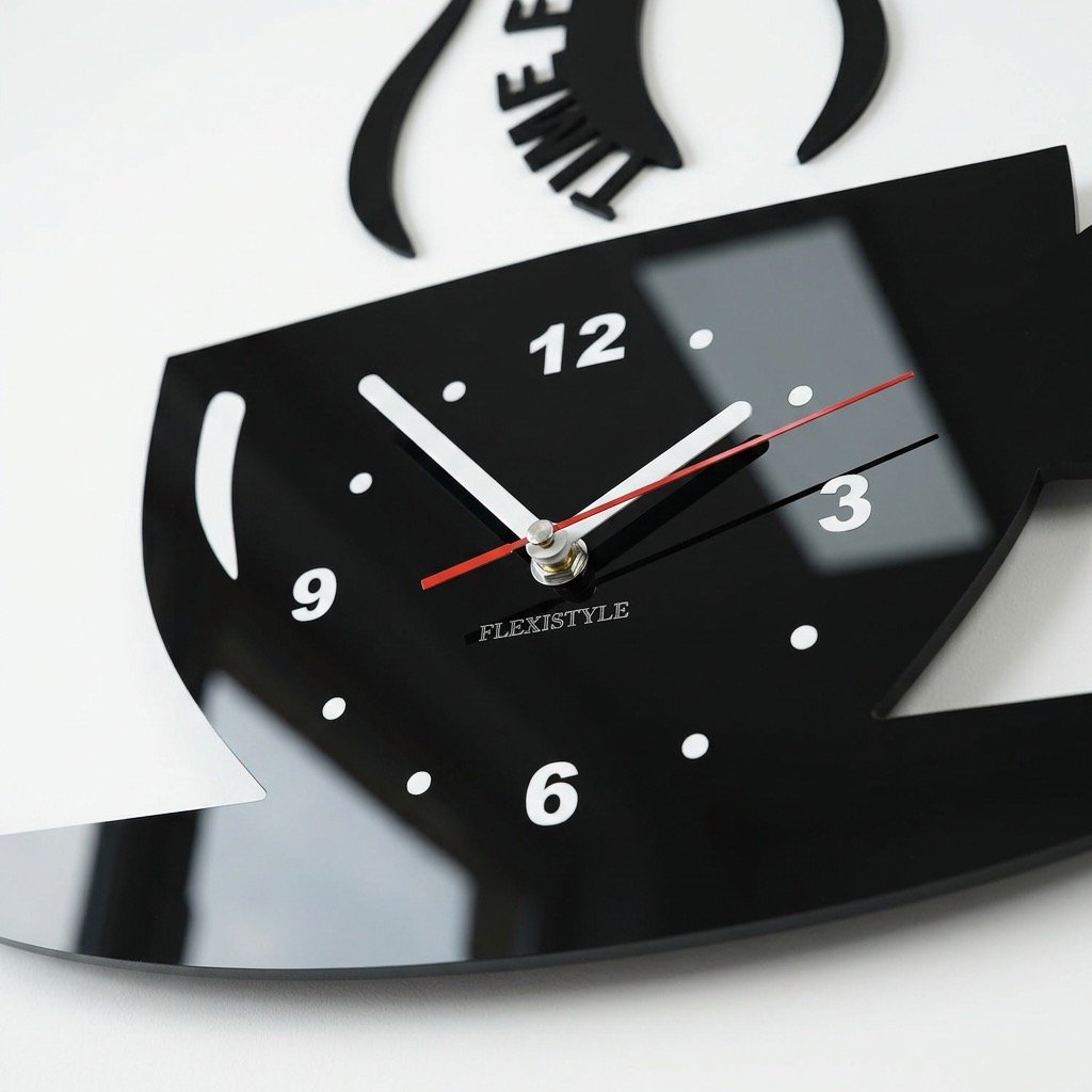 Zegar kuchenny filiżanka czarny nowoczesny duży dekoracyjny zegar do kuchni coffee design FLEXISTYLE