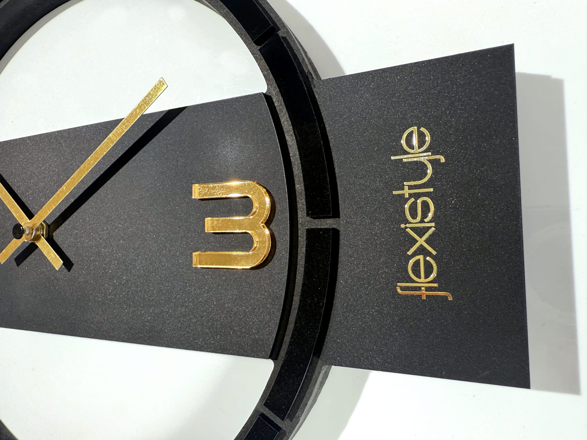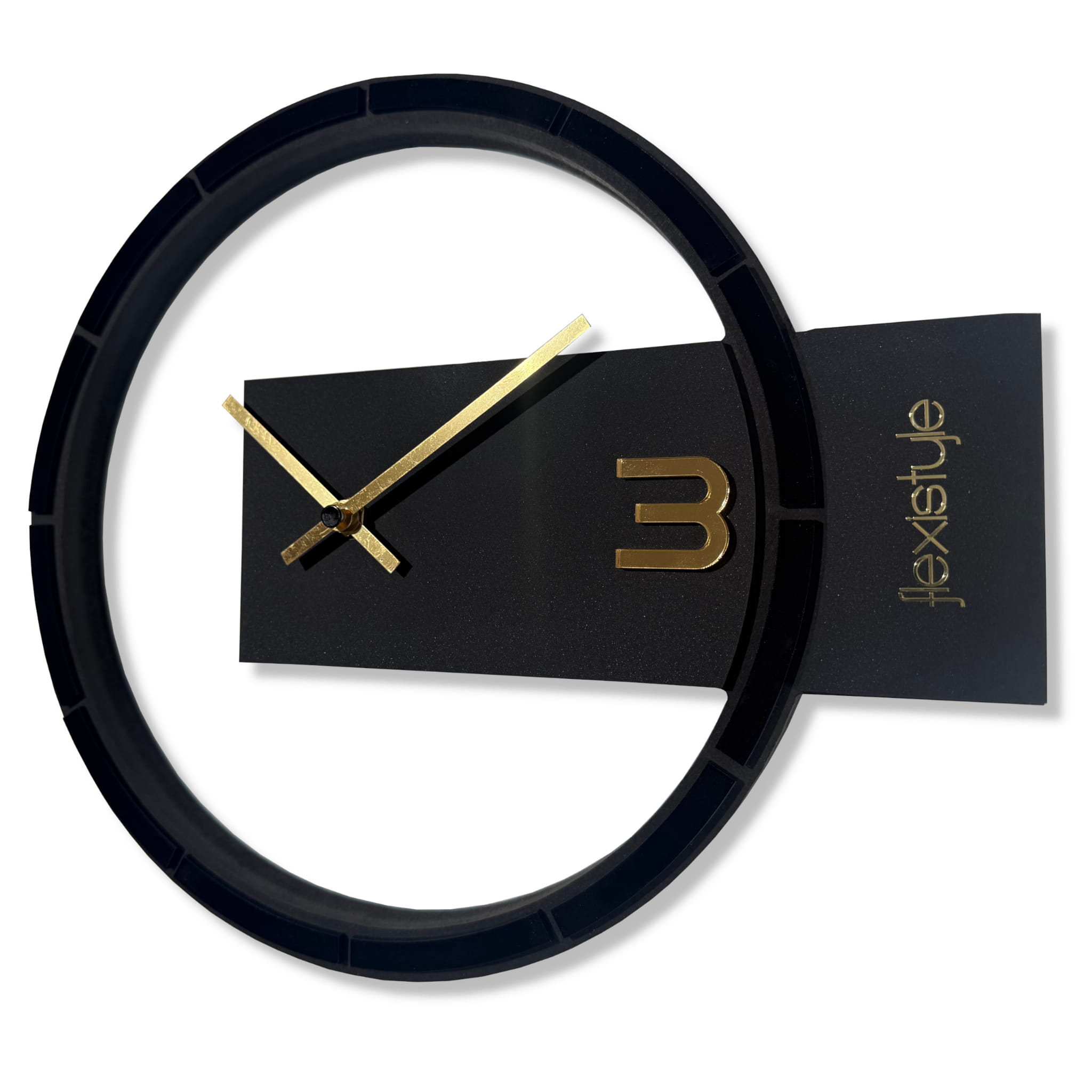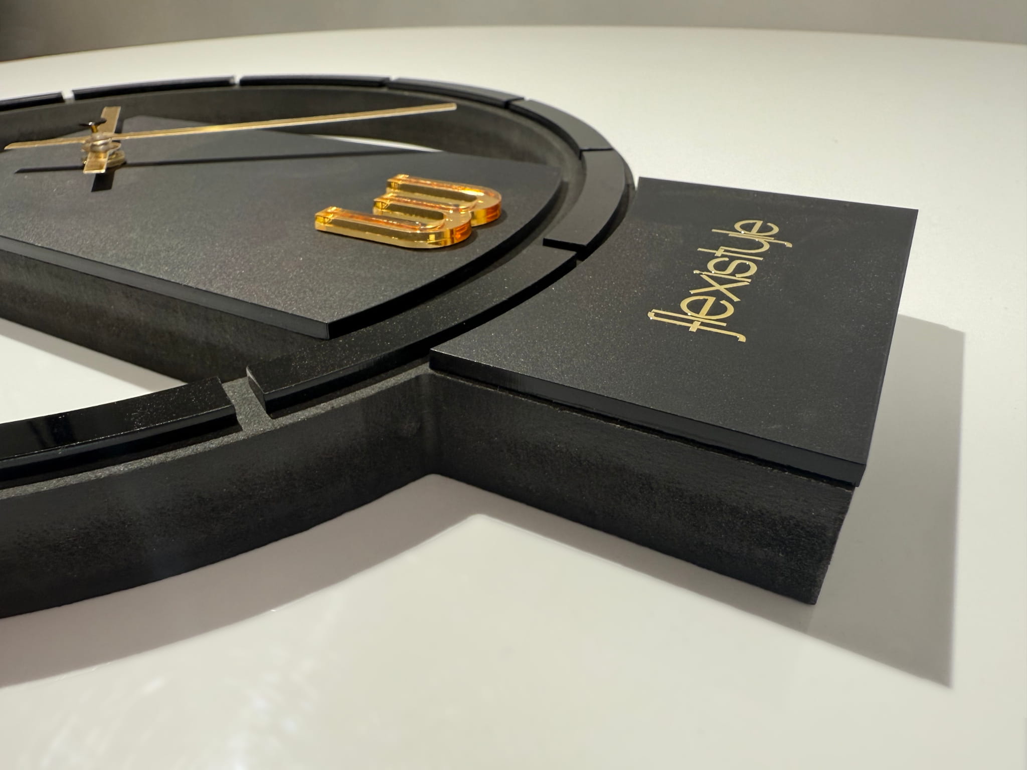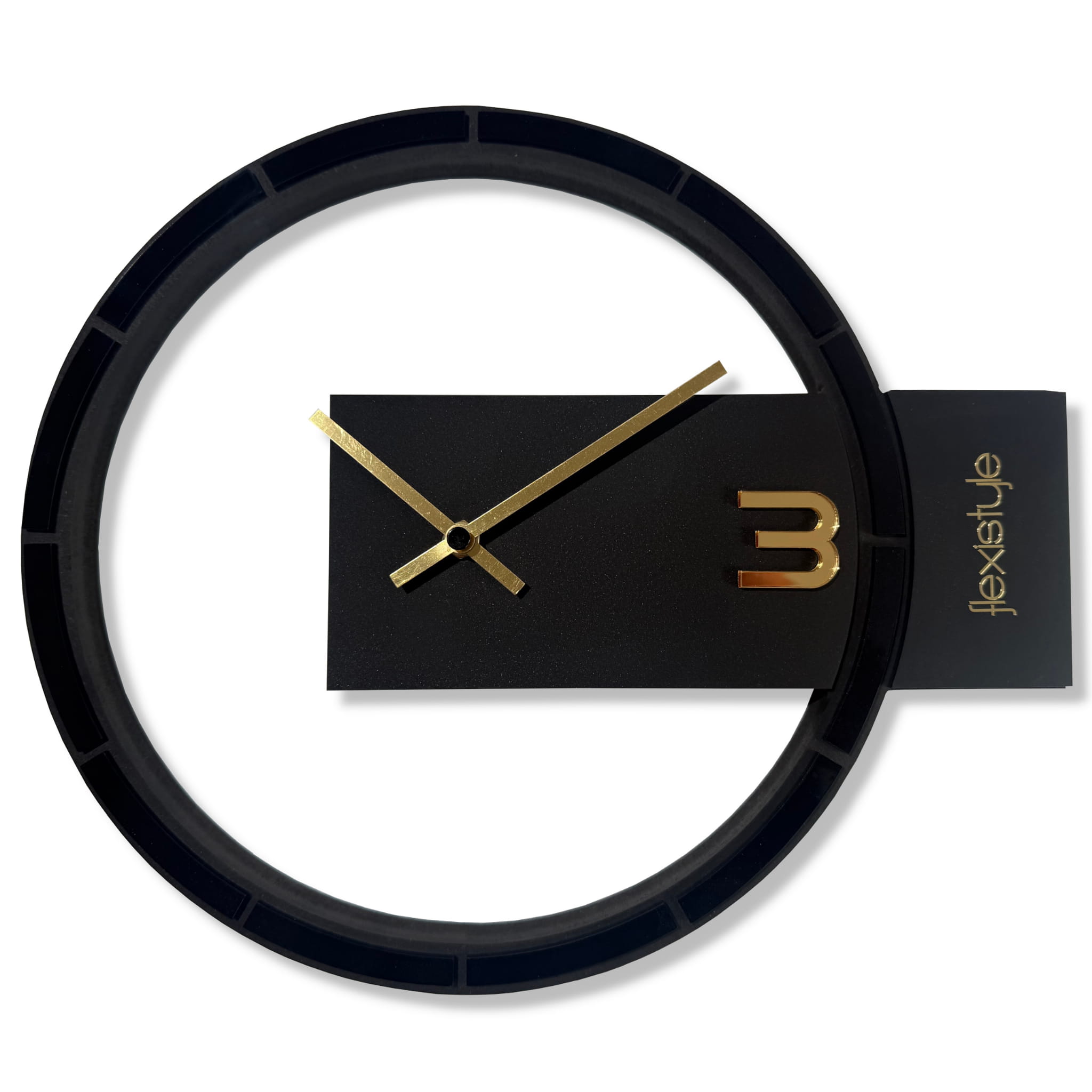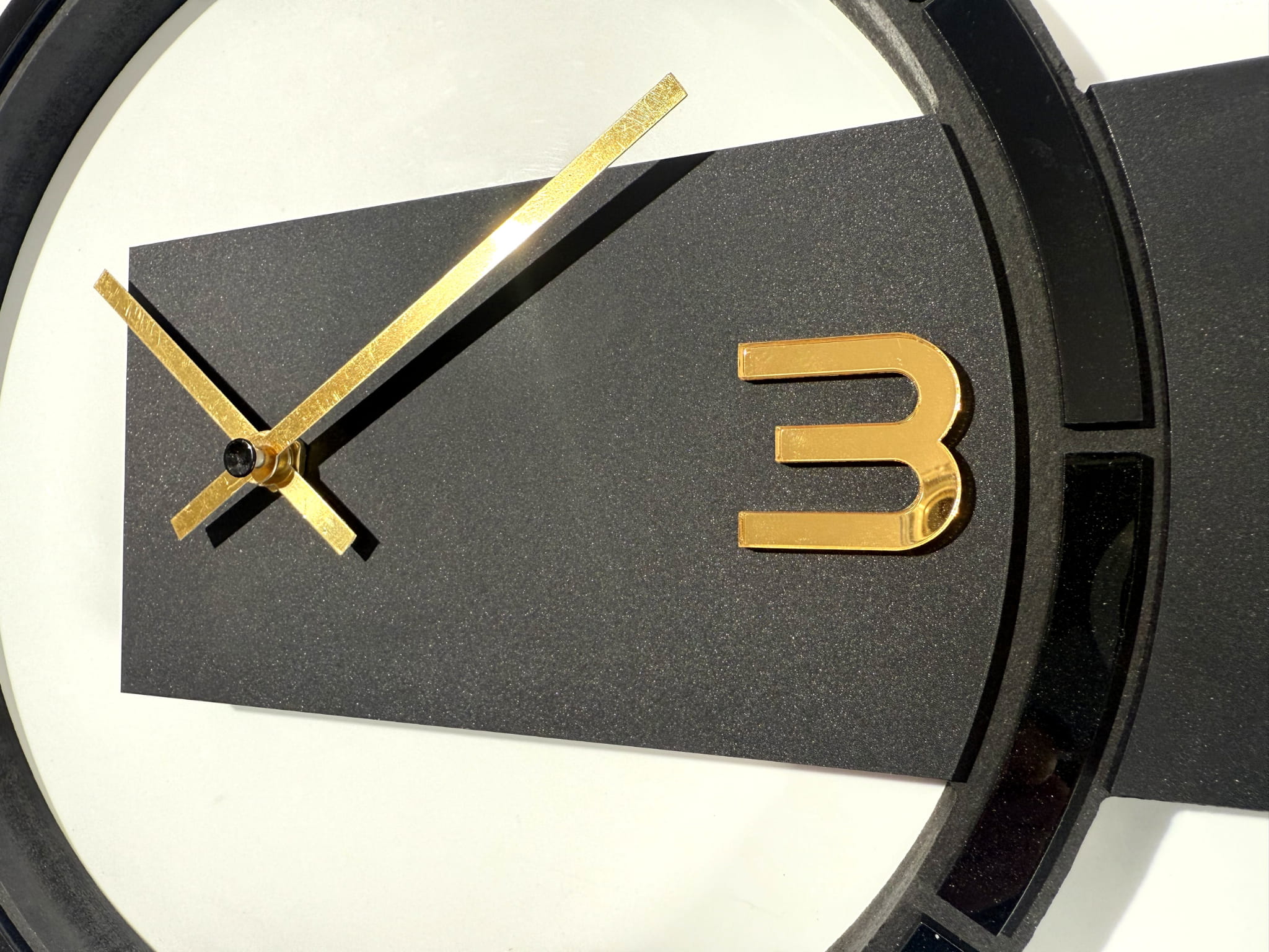 „Black & Gold Asymmetry” to wyjątkowy zegar ścienny o nietypowej, asymetrycznej formie, który przyciąga wzrok oryginalnym wzornictwem. Tarcza o średnicy 30 cm ozdobiona została detalami z czarnej plexi, które kontrastują ze złotymi wskazówkami, tworząc eleganckie, a jednocześnie odważne zestawienie. Alternatywna wersja tego modelu dostępna jest także z dodatkami ze złotego lustra akrylowego, oferując bardziej błyszczący i luksusowy efekt. Zegar wyposażono w cichy mechanizm, dzięki czemu doskonale sprawdzi się w przestrzeniach wymagających spokoju i koncentracji. To propozycja dla tych, którzy szukają designerskiego akcentu z wyrazistym charakterem i złotą nutą.