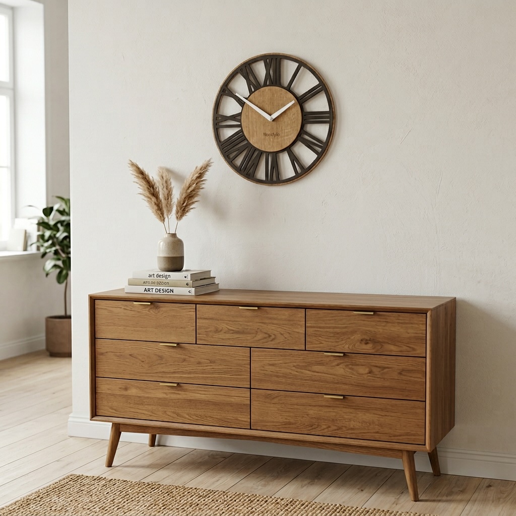 Przedstawiamy Piccolo Wood Loft - zegar ściennej marki FLEXISTYLE, który odmieni Twoje wnętrze i dodatkowo podkreśli jego niepowtarzalny charakter. Nie jest to zwykły zegar; to połączenie designu, funkcjonalności i subtelnej nowoczesności, które z pewnością przyciągnie uwagę w salonie, sypialni lub dowolnym innym pomieszczeniu.